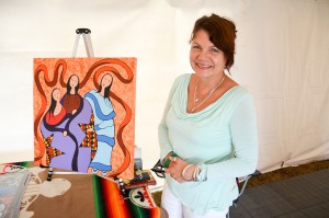 The drums were kept busy under the arbours, as was emcee Chris (the Pleasant) Pheasant, whose steady banter kept any hint of the doldrums at bay and many of the vendors came prepared for inclement weather, setting up tarpaulins and covers for their wares. The cultural teachings and artistic displays were already well undercover, safe from sun or rain under tents.