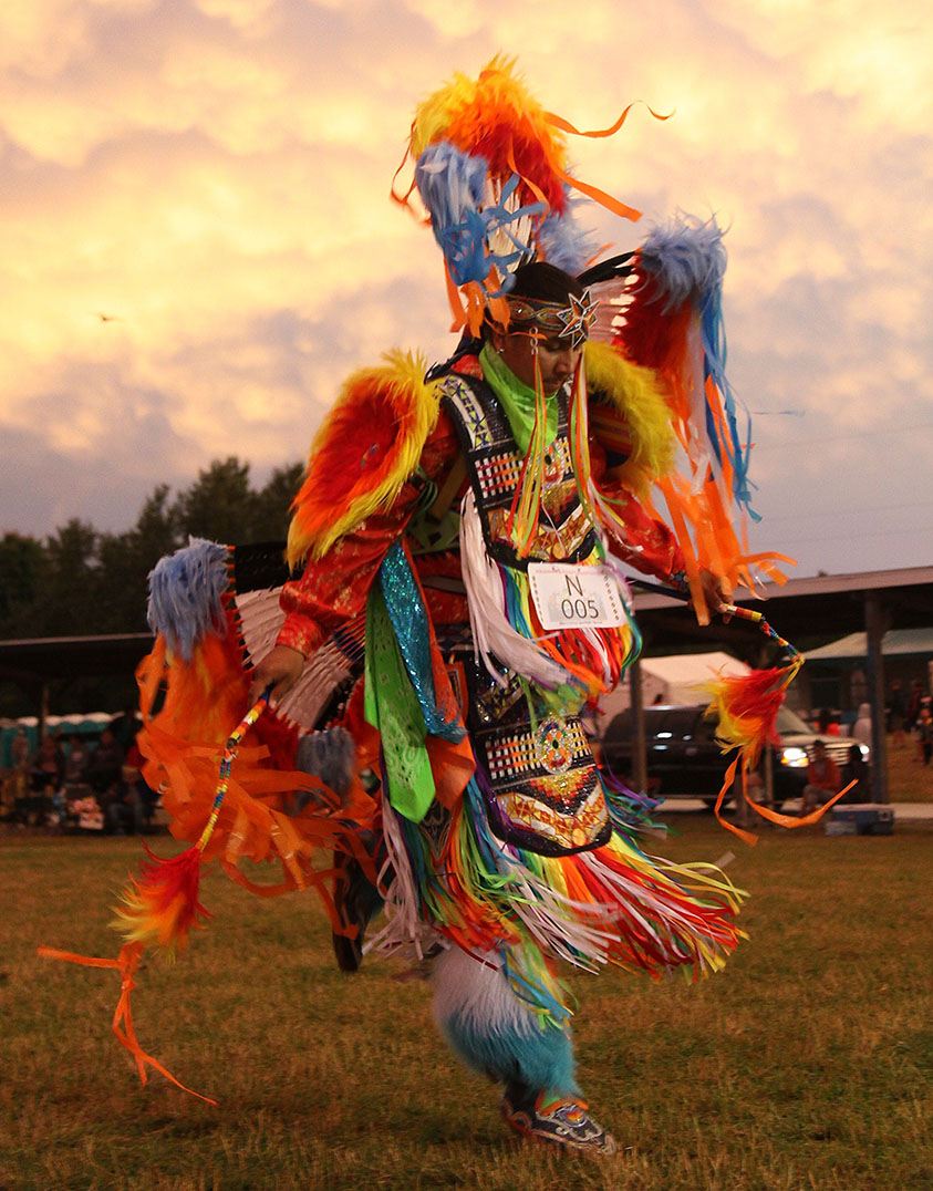 In the various Special’s Categories, Men’s Spotlight was won by Marquel Crawford of the Ojibwe/Dakota; Women’s Spotlight was won by Valerie Parker of the Tonawanda Seneca; while in the Woodland Special Adam Nordwall of the Shoshone/Chippewa/Navajo took first place, Adrian Klein of the Oneida took second and Charles Belisle of St. Croix took third. In the Men’s Smoke Dance Special Delbert Jonathan of the Mohawk took first, Frazer Sundown of the Oneida took second and Charles Belisle of St. Croix took third. In the Women’s Smoke Dance Special Valerie Parker of the Tonawanda/Seneca took first, Jennifer Martin of the Mohawk took second and Nikki Shawana of the Anishinabe took third.