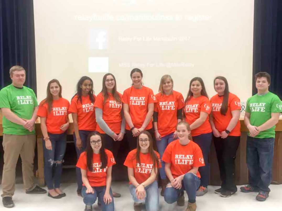 On April 6, the Relay for Life Committee held their Kick-Off assembly. This year’s committee consists of Garret Gauthier, Nea Saunders, Yohana Ogbamichael, Shelby Hester, Kristina Renwick, Carissa Holliday, Kendra Jordison, Victoria MacDonald, Isaac Gosse, Eden Beaudin, Jessica Marshall, Dakota Legge and Sarah Hovingh. As students and staff piled into the cafeteria, 130 students received slips of paper. A short video, directed by Garret Gauthier, was displayed, making students laugh and cheer as the symbolic relay baton made its way to MSS from across Manitoulin. Following this introduction, Garret, Carissa, Kendra, Jessica and Yohana brought the audience back down to earth by telling them that in 2016, an estimated 202,400 Canadians were diagnosed with a variety of different cancers—breast, prostate, lung, and bone. Jessica Marshall asked all the students who received slips of paper to stand up. The students were told that the 130 standing up represented the number of people who would have cancer in a group of 400 people.
