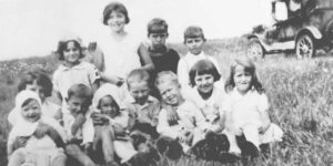 Laura (Clarke) Middlebrook shares that her “Grandparents Ivan and Harriet Clarke had 12 kids and they had a boarding house in the Michaels Bay community. Ivan was a mechanic and a ‘jack of all trades.’ After the fire, they moved to Manitowaning where Ivan was a mechanic and a carpenter. Her father was born there, and he sailed with his father for a few years.”