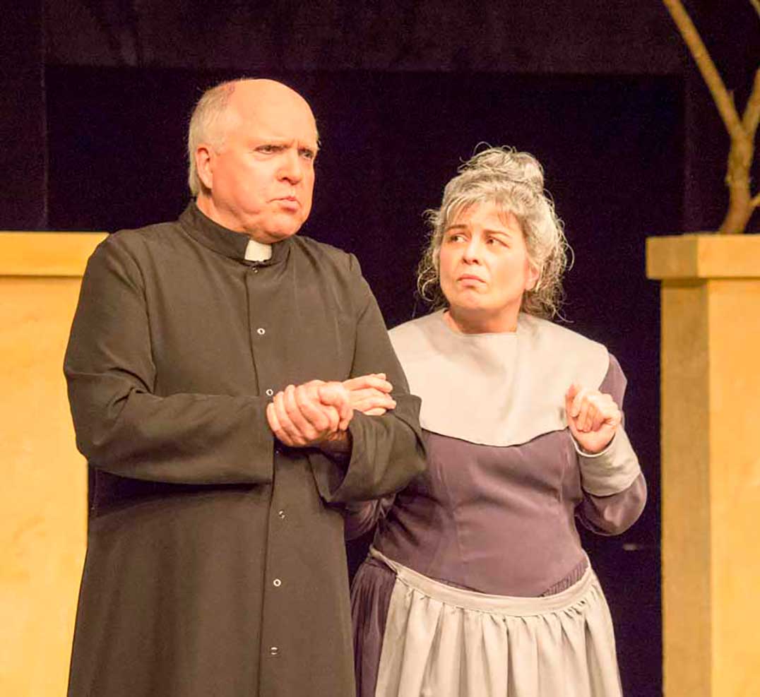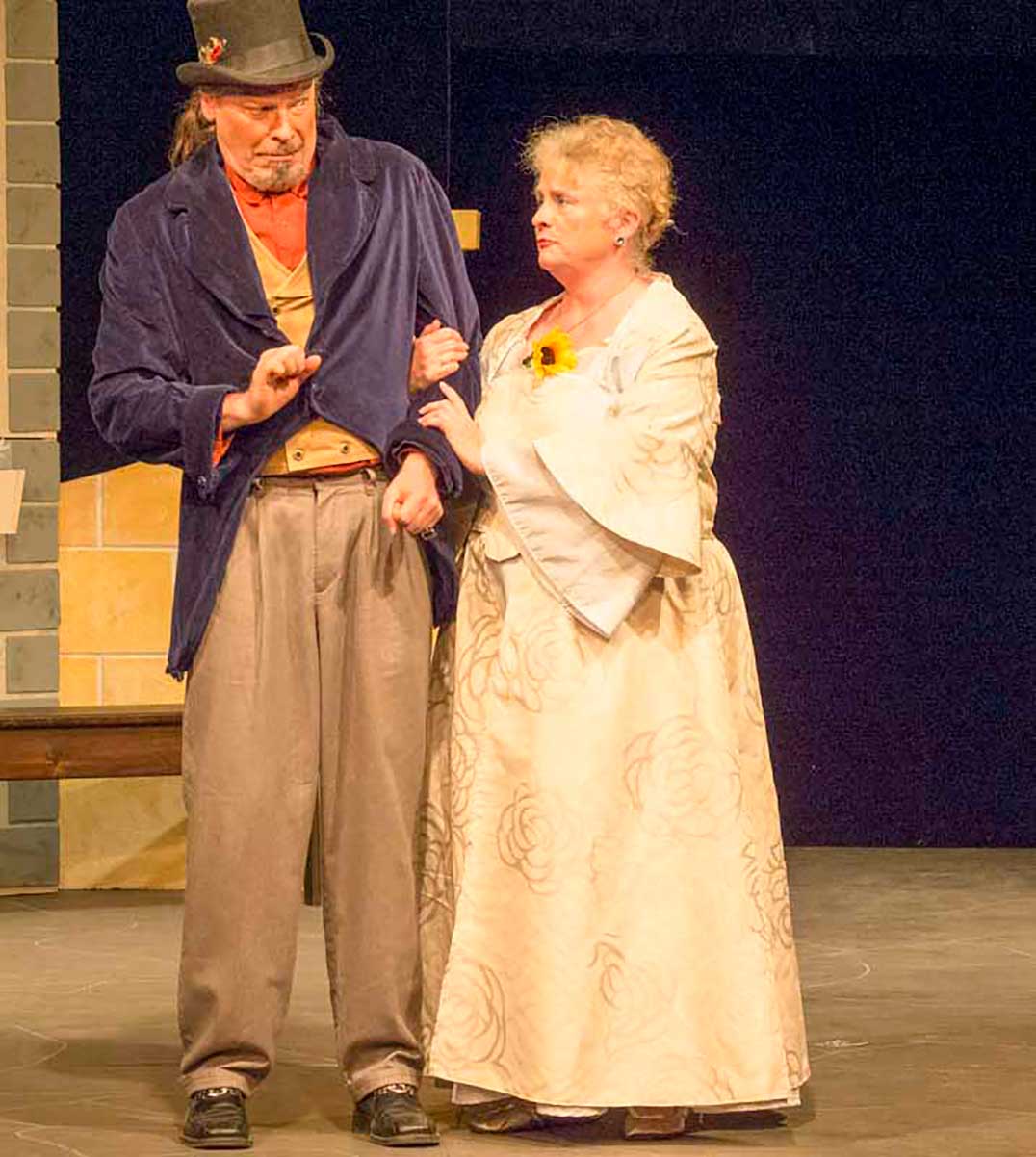 “The villagers of Assiginack are preparing to celebrate the betrothal of Alexis Pointdextre (played by BWTP veteran Patrick Therrien) and the blue-blooded Aline Sangazure (Rachel Gulyas),” explains the plot description in the playbill. “Love is in the air and a celebratory mood surrounds the village, with the exception of Constance Partlet (Sandi Kuntsi), a young lady of lower class who pines for the much older town vicar, Dr. Daly (Alex Baran). Despite Mrs. Partlet’s best attempts at matchmaking, the middle-aged Dr. Daly seems unable to conceive that a young girl like Constance would be interested in him.”