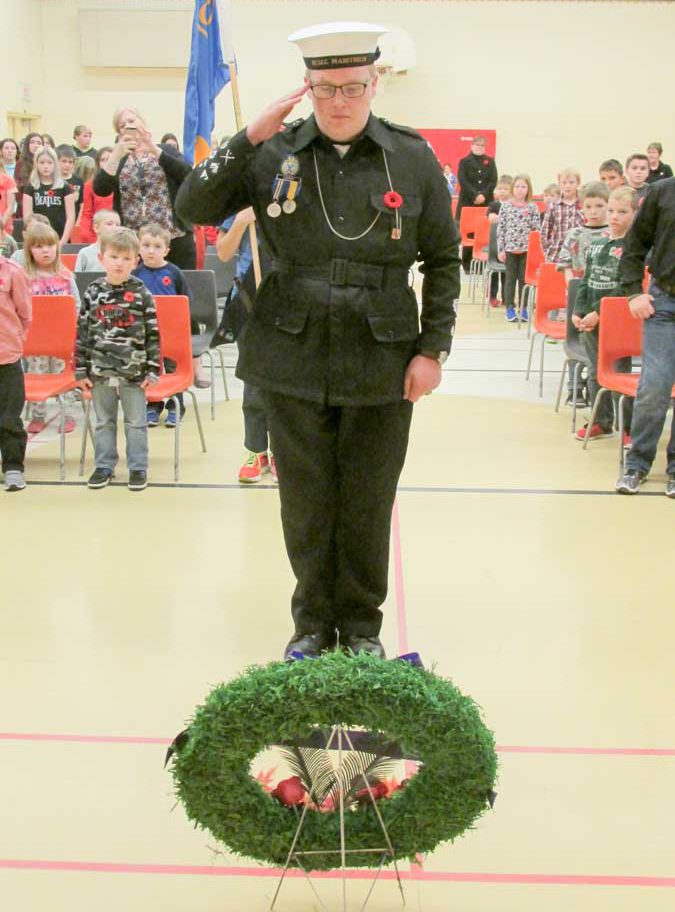 “Welcome students, staff, parents and community members. Welcome to our special guest Chief Petty Officer Second Class Harper, who has come to take part in our wreath laying ceremony,” said Tracey Chapman, principal of C.C. McLean Public School at their Remembrance Day ceremonies. “Our school is having a Remembrance Day ceremony today to recognize our Canadian heroes, both past and present. We continue this tradition in order for students to build an understanding of the sacrifices that have been made, in the past and present, in order for us to live in the democratic society that we live in today.”