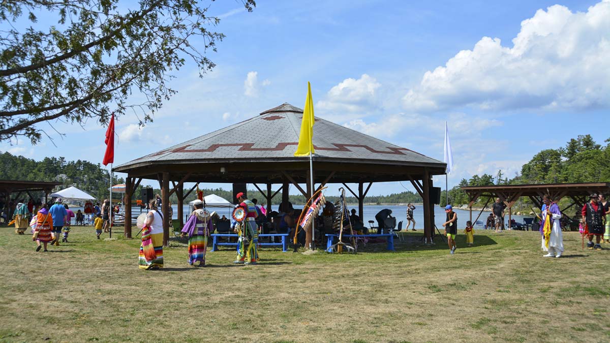 SUNSHINE ALLEY—Dreamer’s Rock kept careful watch over the many dancers, visitors, friends and family who gathered once again at the powwow grounds at Sunshine Alley for the 27th Wawaskinaga Powwow last weekend.