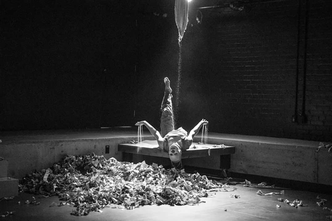 Ms. Dallas has travelled and worked extensively in Africa, Asia and Europe. While Ms. Dallas performs the central role in ‘Kittly Bender,’ she is most ably supported by the work of Emma Kerson, a Toronto-based dancer and choreographer in her own right. Ms. Kerson packs a walloping dollop of humour into her supporting role. Her incredible ability to move across the stage in a toe-cramping pose while bearing aloft a large rock is nothing short of awe-inspiring, but her poise and understated expression spoke volumes sans words.