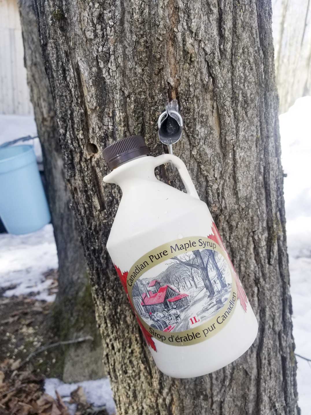 “What’s on the block, you ask?” he continued. “Well, it’s the first litre of that precious liquid gold created by the Dewar Family Maple Syrup Shack in 2018!”