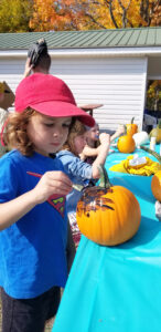 In the ball field a giant Jenga game wobbled, a feed trough splashed as children bobbed for apples, and pumpkins rolled to knock over bowling pins. Plastic axes hit a target, children painted pumpkins and contestants took turns guessing how many pieces of candy corn were in a jar while others took the opportunity to sit and chat with neighbours and friends. A couple vintage crank ice cream makers, brought by the Wiwchar family, were also put to good use, as attendees had the chance to churn then sample fresh homemade ice cream, much to the delight of children and adults alike.
