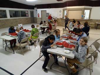 MANITOWANING—The annual Manitoulin Streams eyed-egg brook trout restocking efforts on Manitoulin got many helping hands to fill Scotty boxes with 10,000 brook trout eggs as Mrs. Hagman’s Grade 4/5 classes came to the Assiginack Arena to assist.