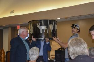 One person who didn’t have to buy a ticket or bid to walk out the door with a great catch was volunteer nursery manager Ken Pearce—who was named Manitoulin Streams Volunteer of the Year for his tireless efforts on behalf of the organization. Mr. Pearce has not only provided literally thousands of trees for re-planting at the various remediation sites across Manitoulin Island, but had also provided seedlings for presentations and work with local students. Mr. Pearce was a founding member of the Manitoulin Area Stewardship Council, now part of Manitoulin Streams, and continued his dedication to the organization. His citation read, in part, “The results of his labours in our nursery and beyond are far-reaching and cross-generational.”