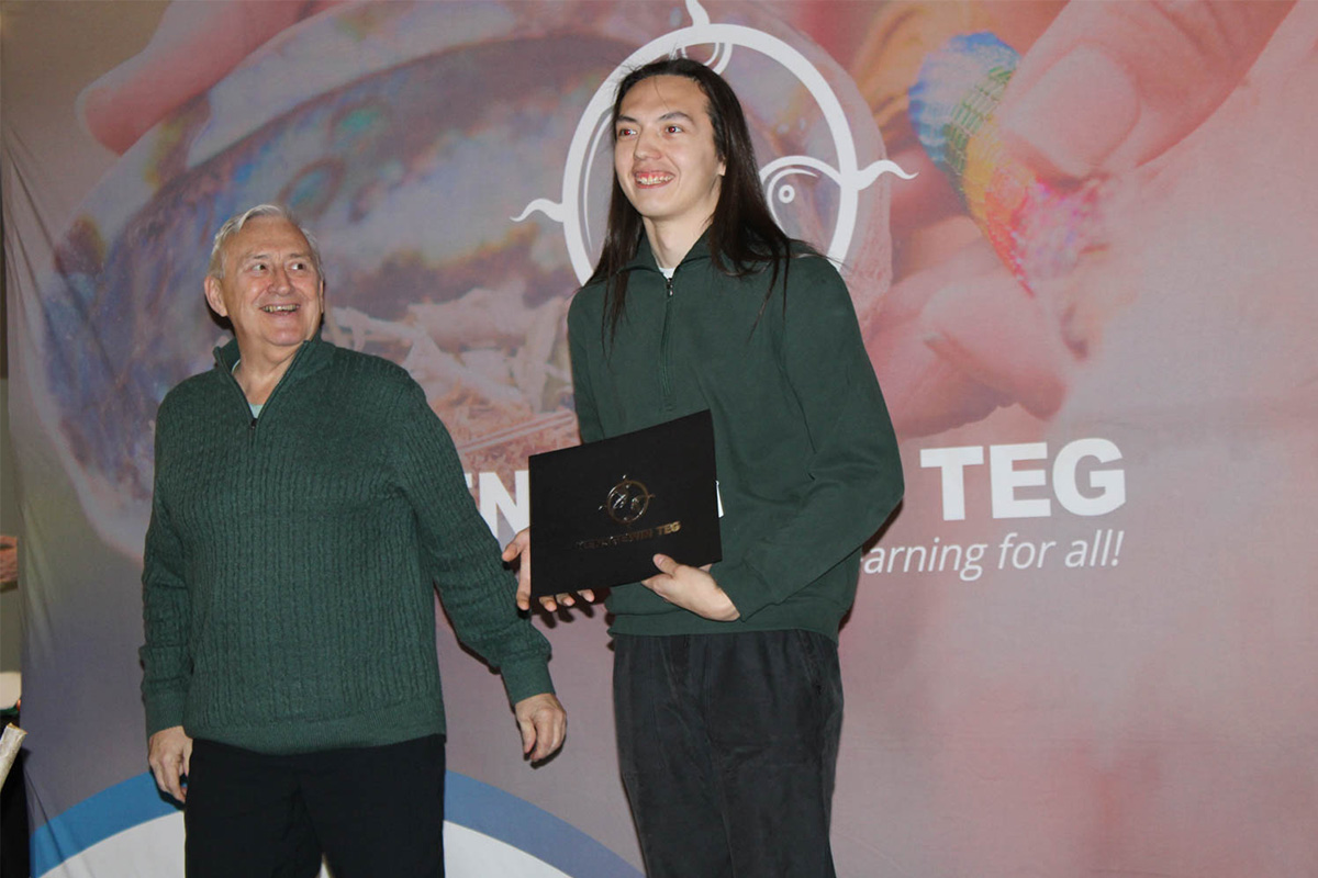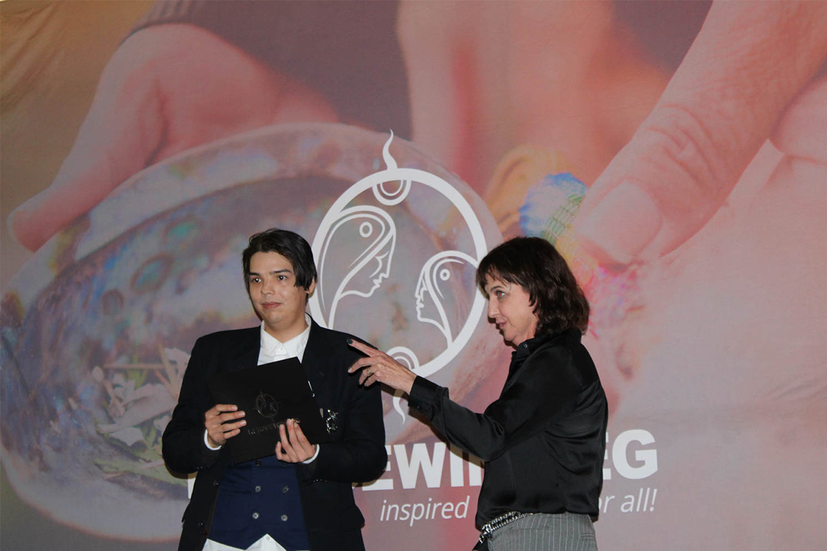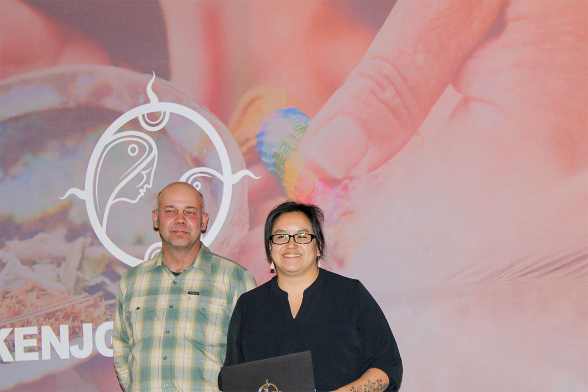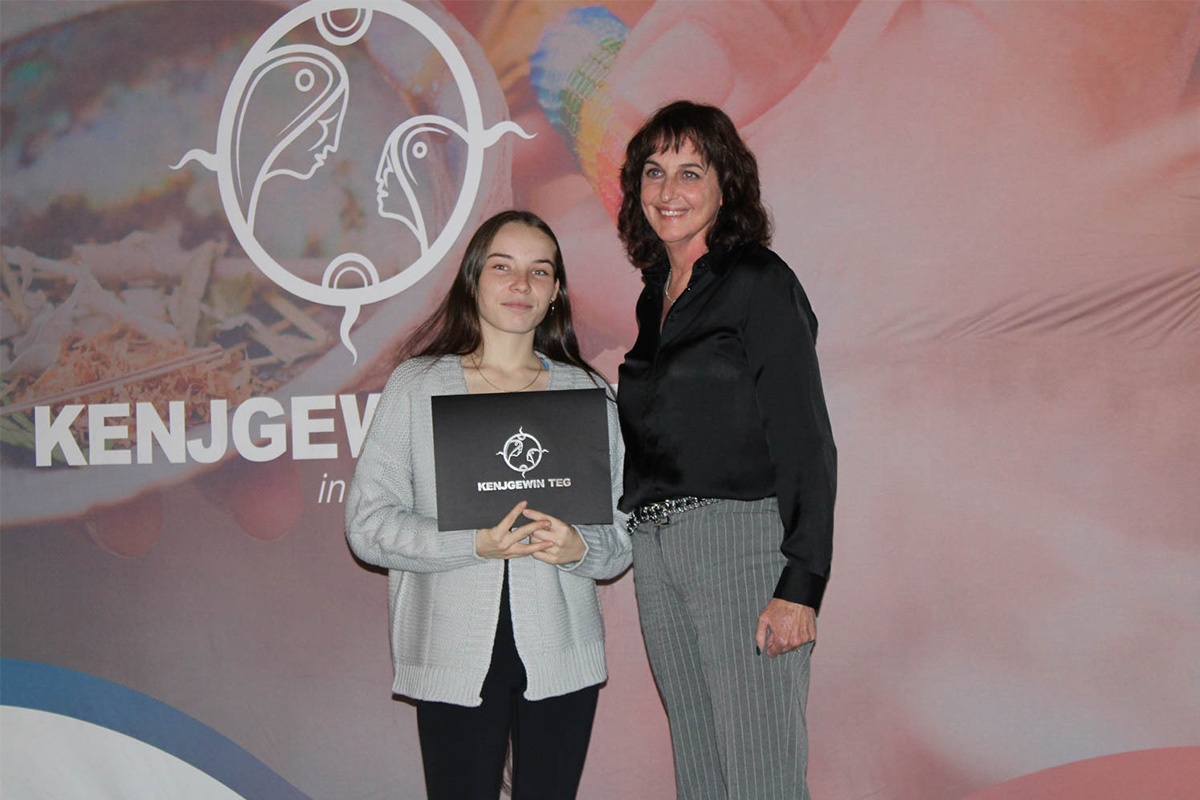 The Lloyd Debassige Memorial Award was next, presented to Jessica Sky CWB (Certified Welding Bureau program) by Dave Barnes, trades instructor. This award honours a student who has shown commitment, dedication and leadership in a Trades program combining culture, language and academics as their primary focus at Kenjgewin Teg. “I absolutely loved taking the welding course at Kenjgewin Teg. I met classmates that turned into friends and my instructor Dave was the best.” Ms. Sky said.