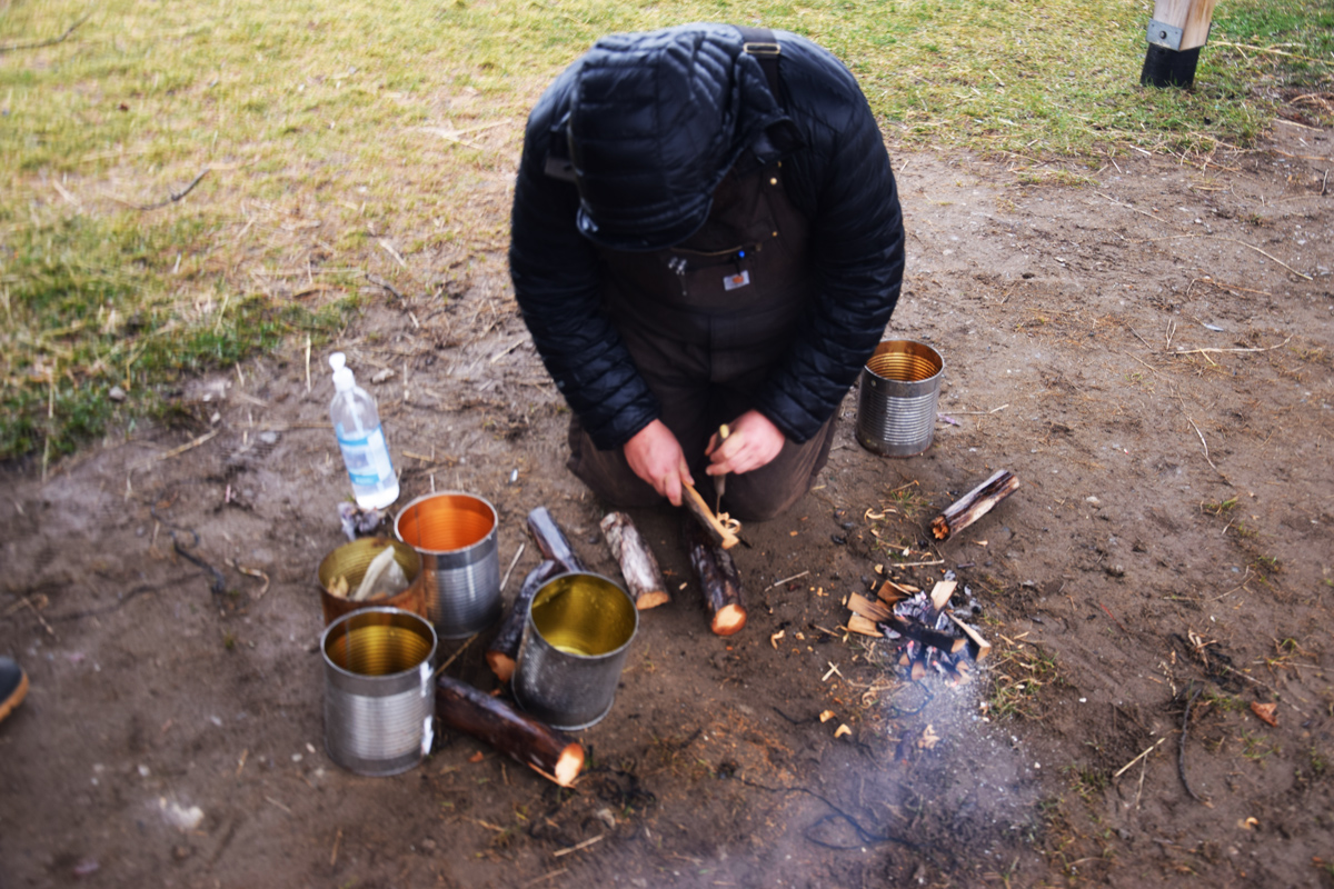 The day could hardly have been more appropriate for learning land-based survival skills and medicines as rain and wind provided ample reminders of what Mother Nature can have up her sleeve, emphasizing the need to immediately find shelter when caught outside at this time of year. Luckily, a nearby tipi was set up complete with fire, hot chocolate, coffee and tea as a warming station. Outside, chili and scone, hotdogs and buns were in ample supply as well.