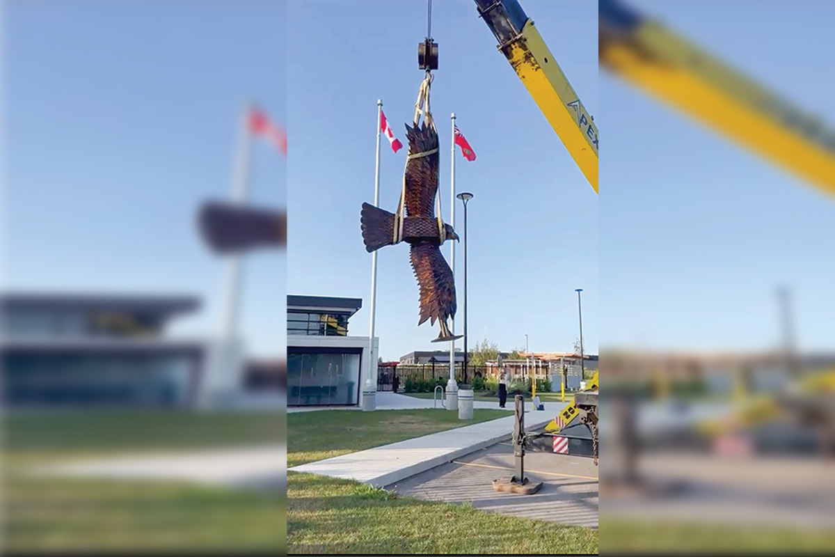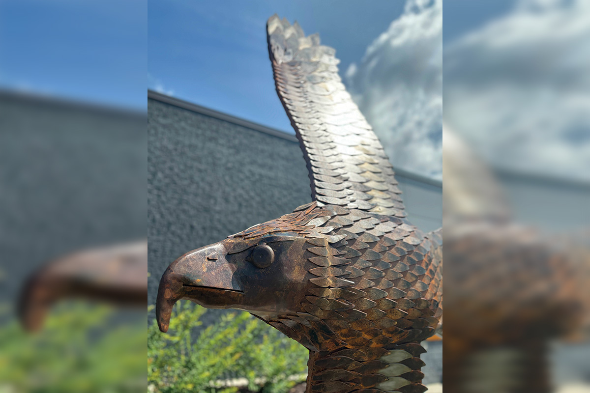 M’CHIGEENG—Local artist Kathryn Corbiere of One KWE in M’Chigeeng First Nation sculpted a beautiful large hawk for the unveiling at Northway Wellness Centre, through the Sault Area Hospital (in Sault Ste. Marie), using steel from Algoma Steel Corporation.