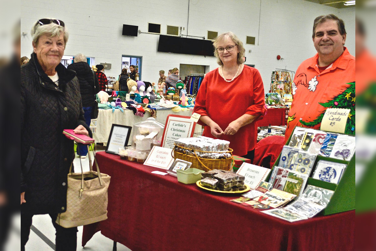 The Island Summer Market held a very successful Christmas Market at the M’Chigeeng complex recently. Organizer Jan McQuay explained 33 vendors were on hand to sell crafts, baking, jewelry, Christmas decorations and much more. There was live music, along with snacks and lunch available. The M’Chigeeng complex was packed with shoppers for the day. In photo, left, is Joanne Carlisle selling Christmas cakes at her table while photo right saw Jackie Stack with her table stocked with home made baking and jellies at the M’Chigeeng Christmas market.