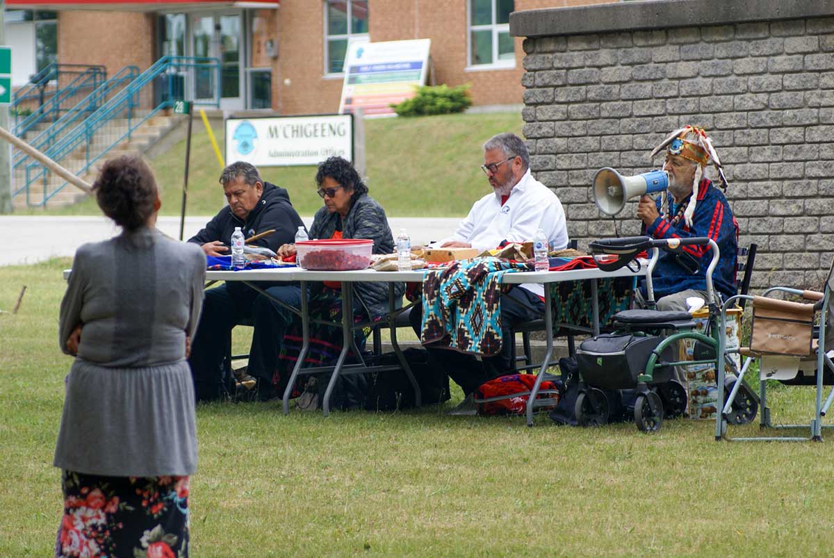 M’Chigeeng First Nation Councillor Joseph Hare attended residential school in Spanish over five years. “It bothers me,” he addressed those present. “It seems like many of you don’t care very much about what happened to our kids. How can you not care about the children that were abused? The children that were killed? The children that were buried? How can you not care about the children that never went home? About the parents, grandparents and families who never saw their child again?”