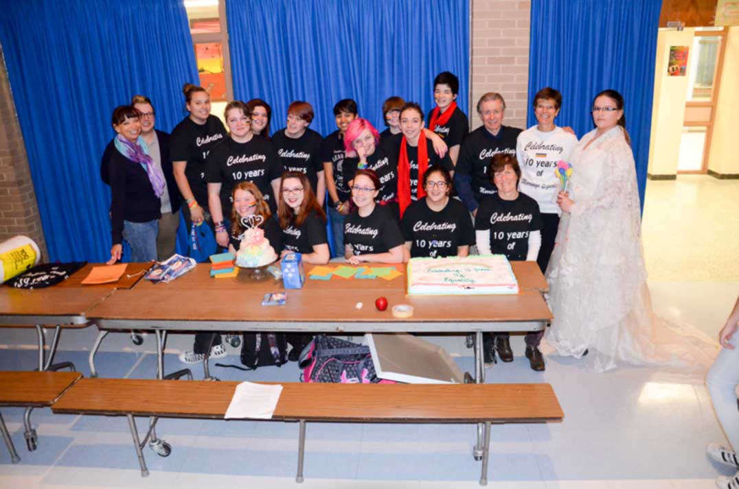 “We are the gay-straight alliance at MSS,” said Sandi. “As you may know from the talk around school, the MSS Rainbow Rights Alliance has put together this event to celebrate the 10-year anniversary of legalizing of equal marriage rights in Canada.”