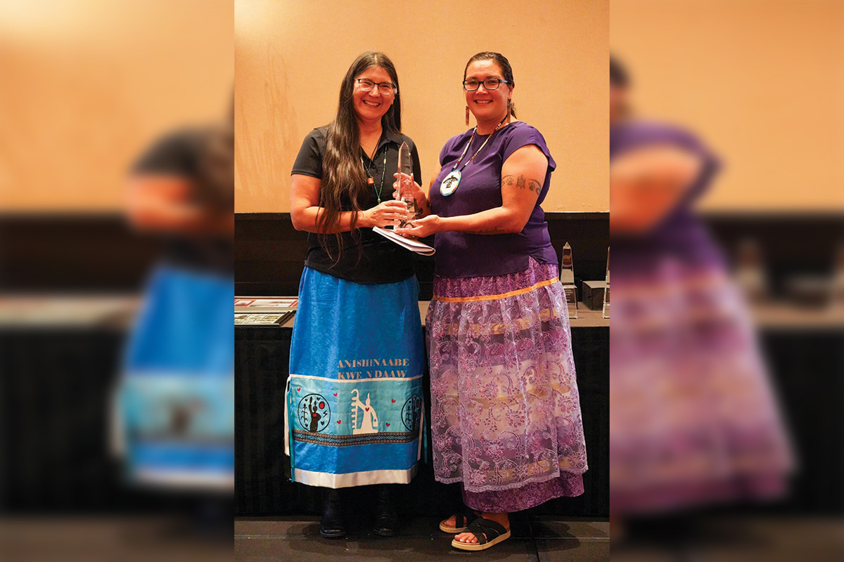 Elaine F. Debassige of M’Chigeeng First Nation received a lifetime achievement award in the category of education. “She is a true champion of education and our language, Anishinaabemowin.”