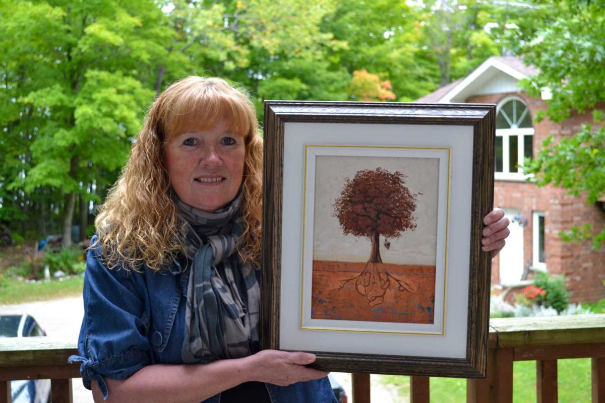 Two Manitoulin Fine Arts Association artists had works selected for this year’s exhibition: Willa Wilson for her monotype and watercolour pencil on arches ‘Northern Pike’ and Linda Williamson for her mixed media image ‘Tree of Life.’