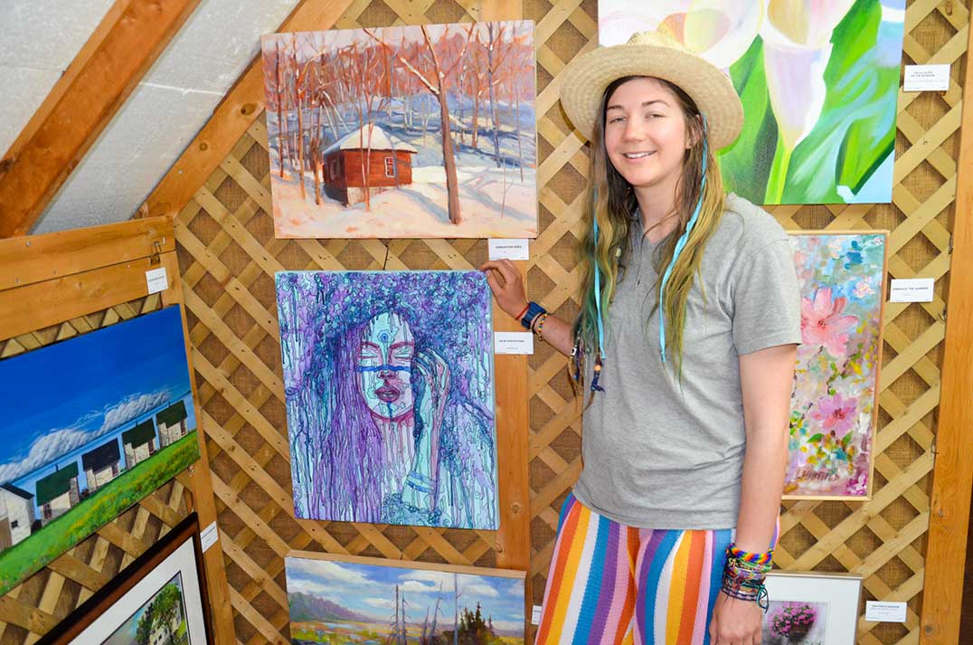 If there was anyone in the gallery more excited than Mr. Wheale and Ms. McMullan, however, it was likely fledgling artist and environmental scientist Cattail Reed, daughter of Little Current’s Karen Tracy. Ms. Reed’s work ‘False Perceptions’ in acrylic and ink is now hanging in the gallery. “This is my first work to be hung in a gallery,” she said. Ms. Reed has been painting since early high school.
