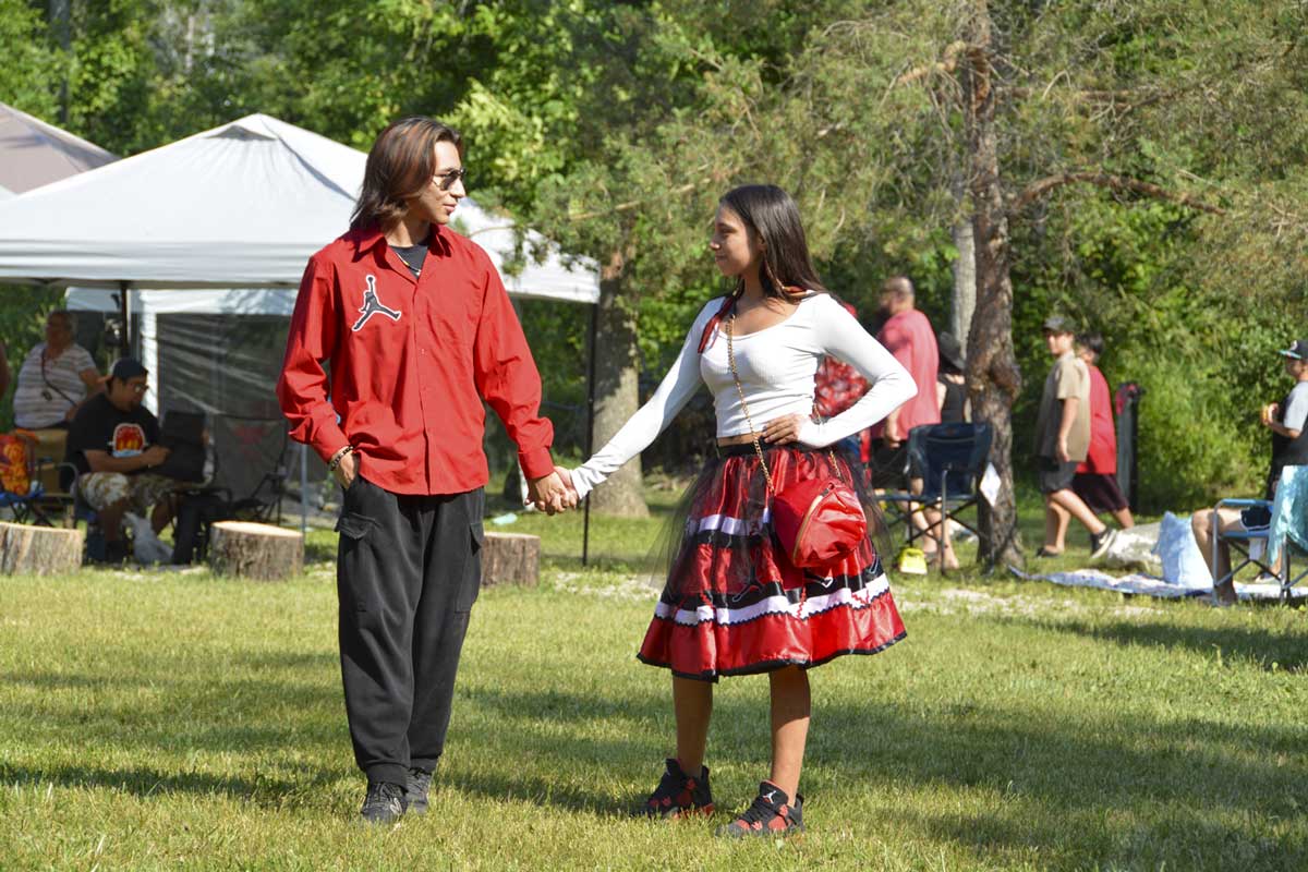 The laughter of young children racing around the powwow grounds was matched only by the dedication those same youth showed while engaged in their respective dance styles. Jingle dress dancers, shawl dancer, traditional men’s regalia and grass dancers were all to be found in miniature form throughout the weekend.