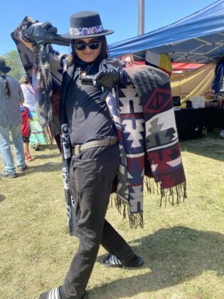 Jackson Jacobs displays his unique style at the Wiikwemkoong Cultural Festival. photo by Bonnie Kogos