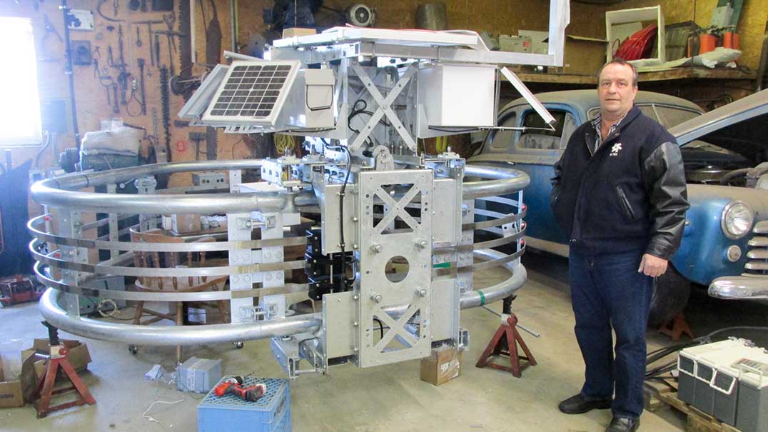So, Mr. Gagnon and his partners got to work on designing, building and testing a new application of a traditional technology. Over the course of the next two years, Windular took a traditional 10 kW wind turbine and turned it on its head. Mr. Gagnon said, “this is about innovation. We took a well established technology in the form of a wind turbine and came up with a design that would allow the turbine to be mounted on a customized rail and carriage system permitting the turbine to travel 360 degrees around the tower seeking out the best wind resources.”