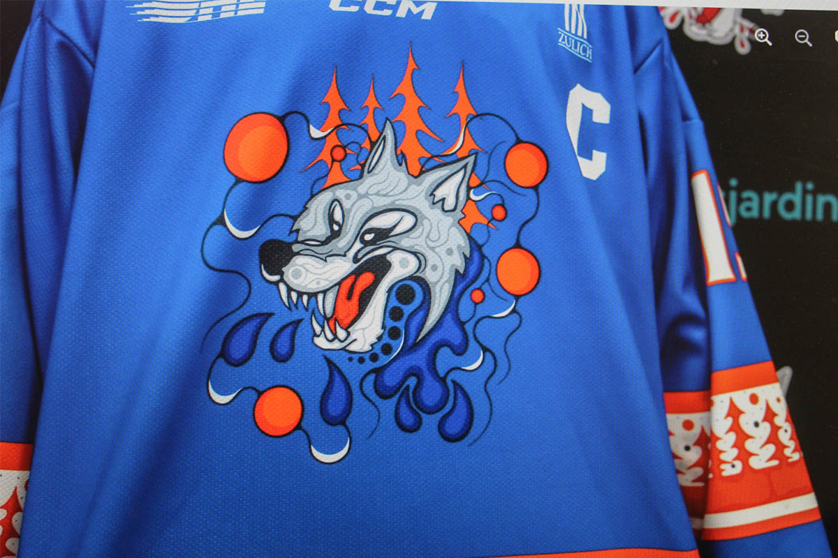 SUDBURY—Local artist Michael Cywink, formerly of Whitefish River First Nation (WRFN) who now lives in London, Ontario was proud to have been requested to design the Sudbury Wolves hockey team jersey for their annual Indigenous celebration night last Friday in a game against the North Bay Battalions. For the third year in a row, the Wolves honoured the Indigenous community by commissioning specially designed hockey jerseys.