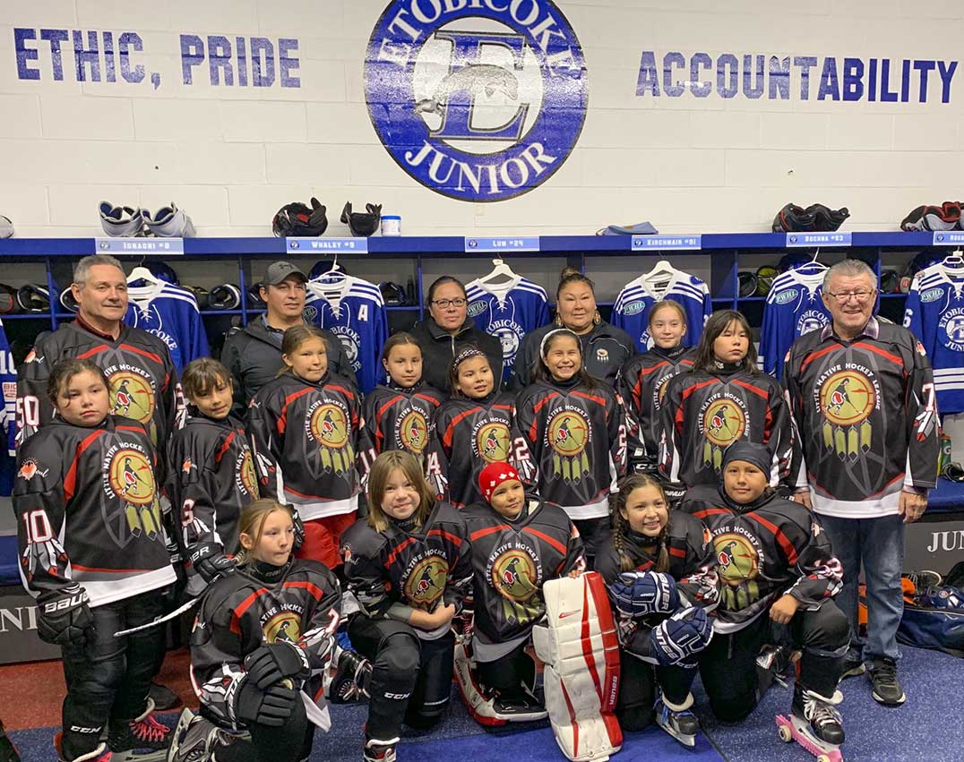Ms. Bull reached out to Wiikwemkoong Ogimaa Duke Peltier, who quickly put her in touch with Youth Centre manager Lawrence Enosse. Together, Leaside and Wiikwemkoong were able to organize land-based activities, an equipment giveaway, 1.5 hours of on-ice instruction by Leaside for girls hockey and an exhibition game against the Manitoulin Panthers.
