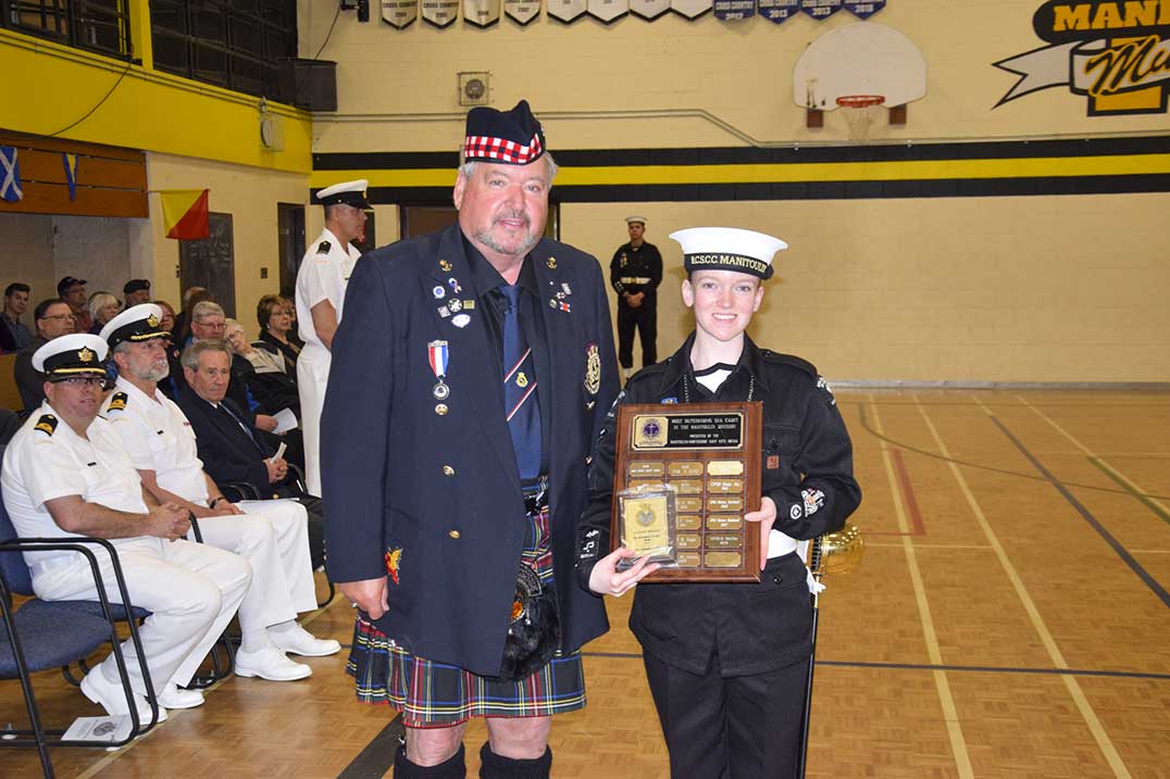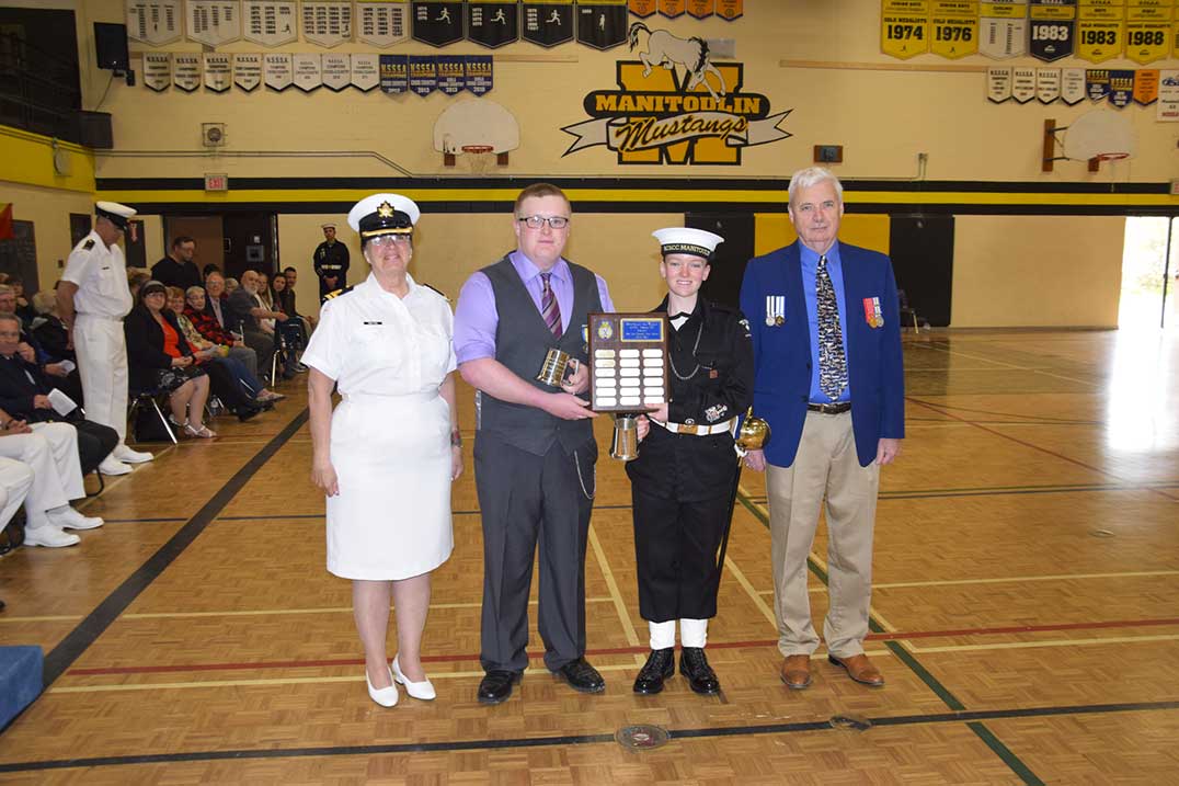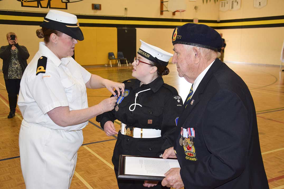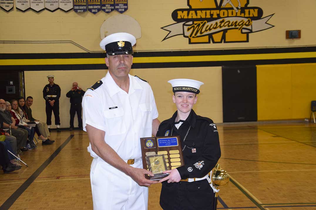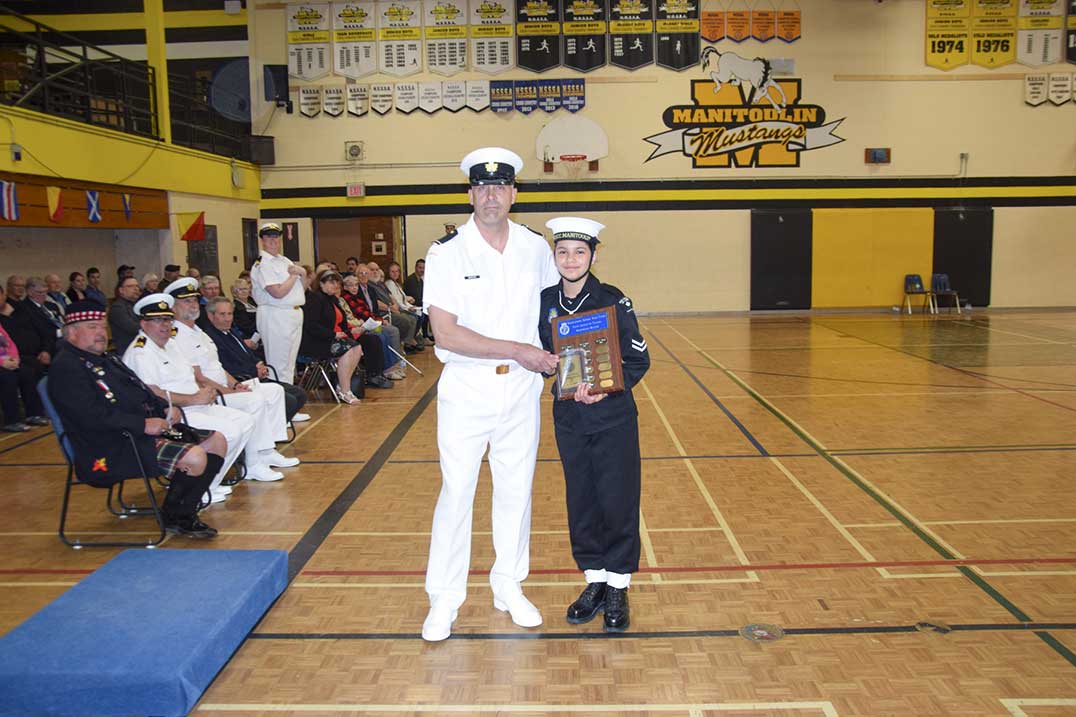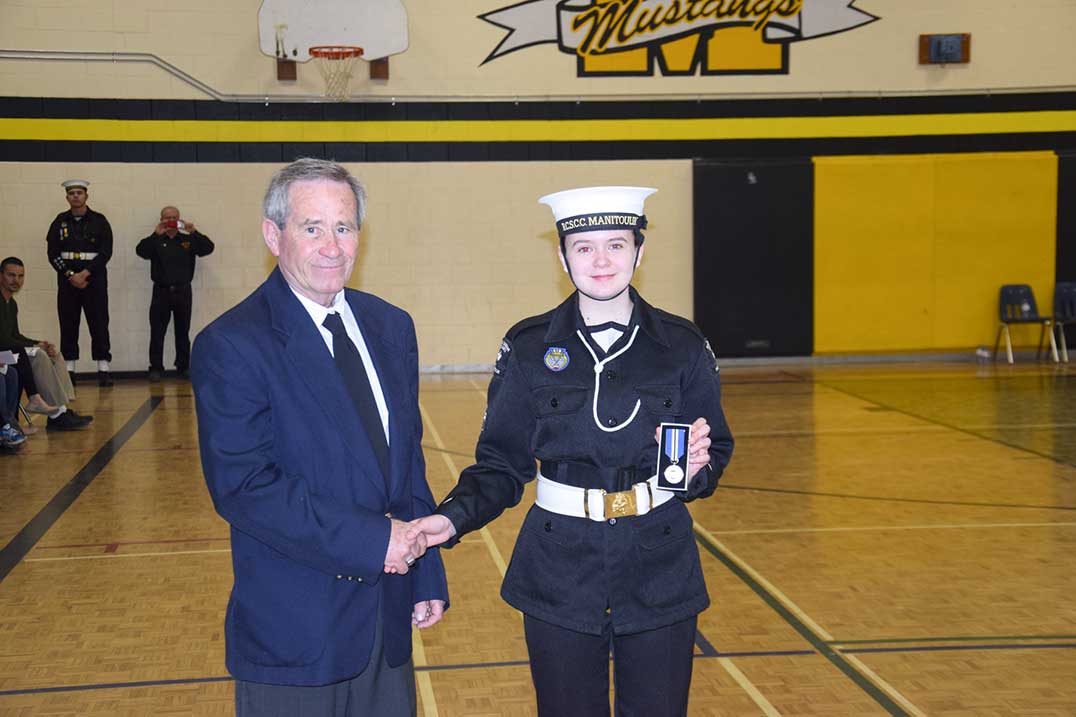 The Cadet Service Award was presented to CPO2 Lauren MacKay by Manitoulin Navy League president Bob Jewell.