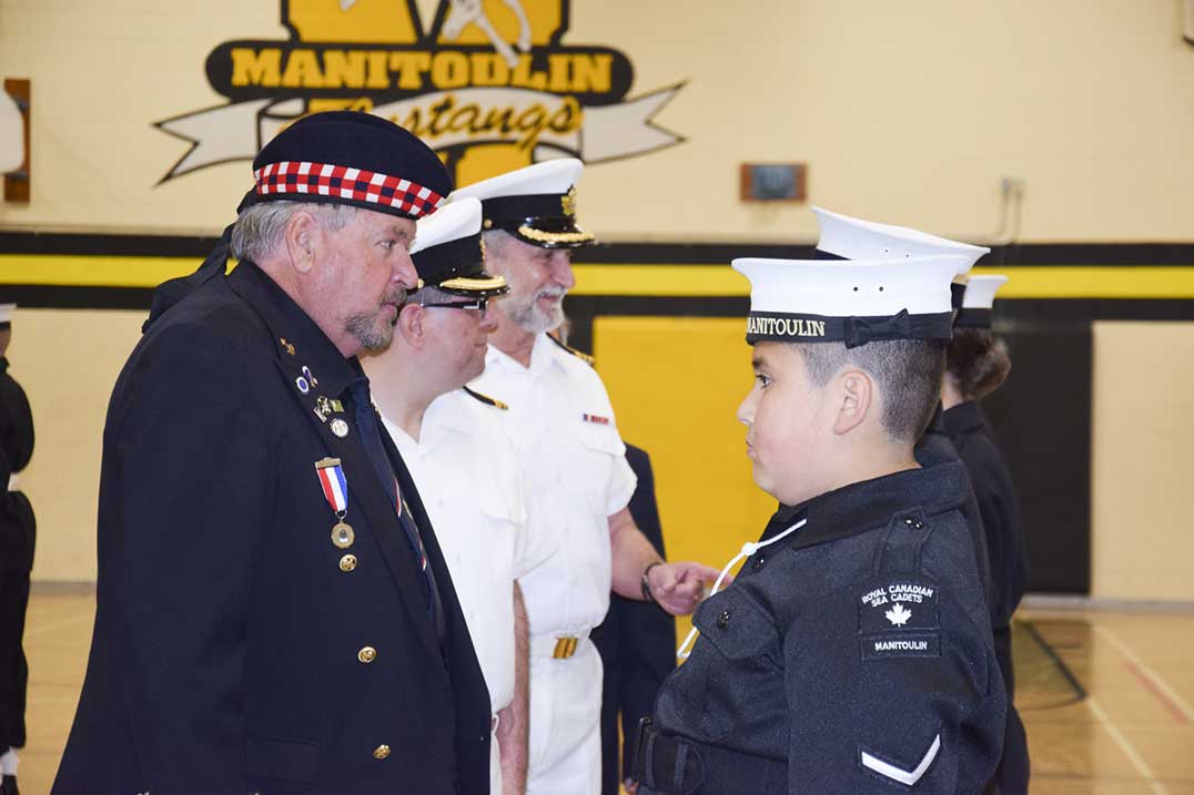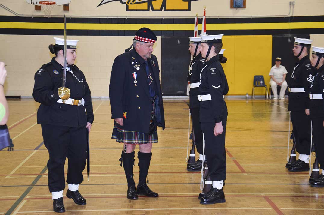 The 15th annual ceremonial review was emceed by Lt. (N) Maggie King Roi as the corps marched into the Manitoulin Secondary School gymnasium under the watchful gaze of reviewing officer Bernard Andrews and the company reviewing stand.