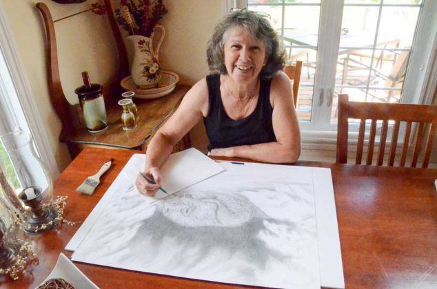 The average art tour venue sees a fair number of visitors, but there are also periods of quiet. “They seem to come in spurts,” laughed long-time contributor Lorraine Loranger of Bay Estates. This works out well for the artist, as she uses much of the down time between visitors to work on her latest creation, a finely detailed pencil drawing of a fox in winter.