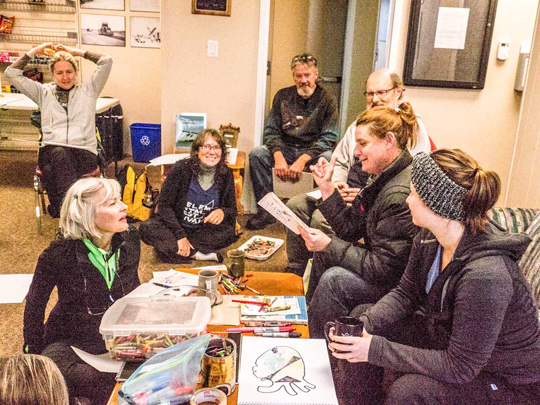 4elements’ Executive Director Sophie Edwards emphasizes that, “Excursions and all our programs offer ‘ways-in’ to art-making, some less formal, most designed to not be intimidating, but all engage people in skills and techniques…Even the creative map making encourages people to think conceptually, which is an important step in creating ‘formal’ art.”