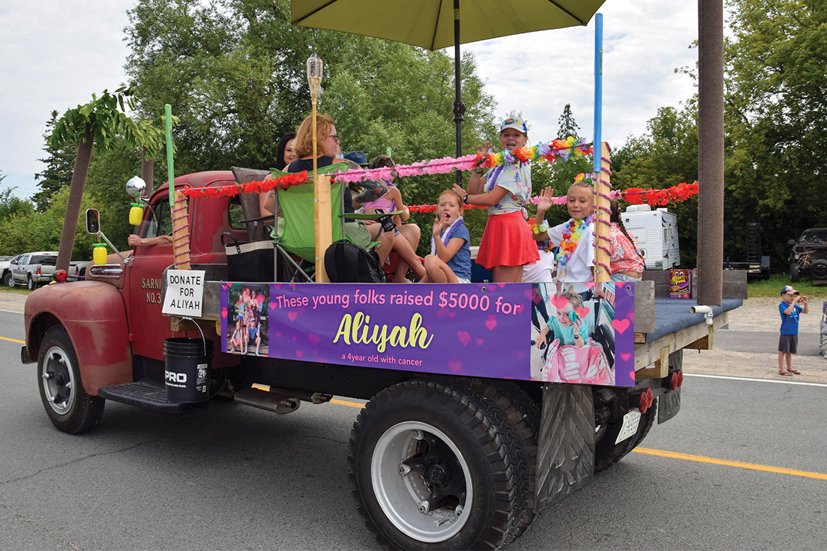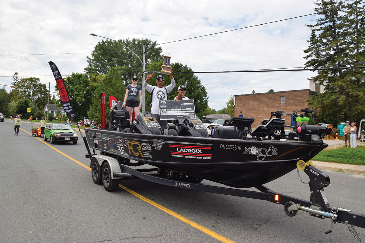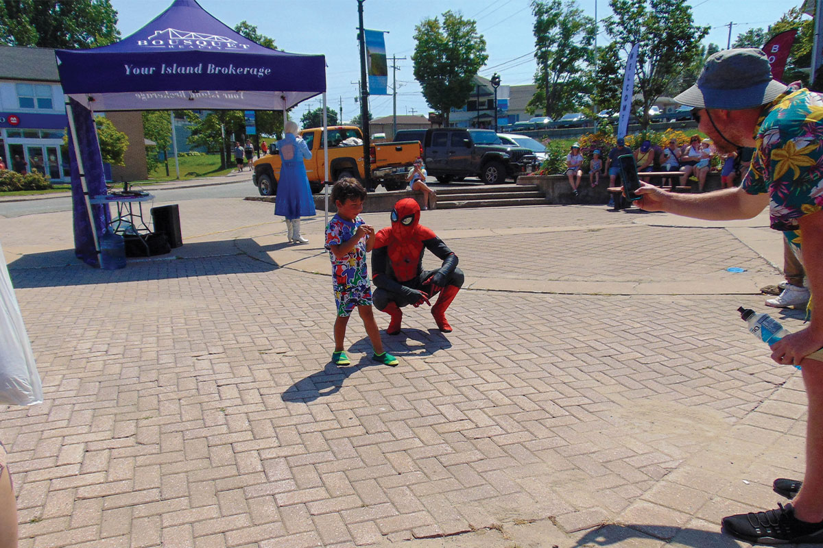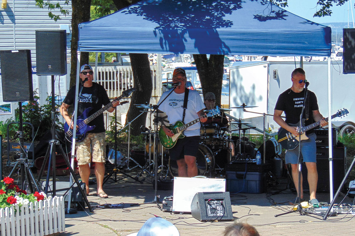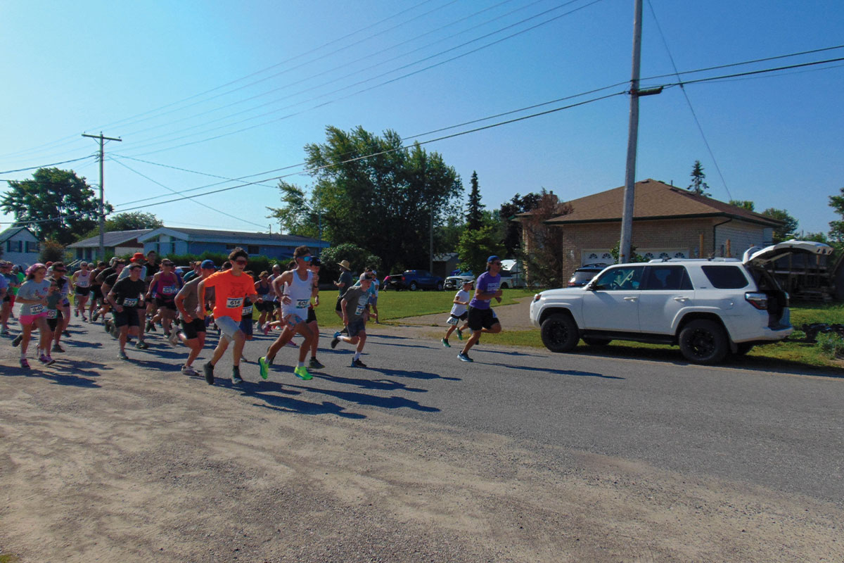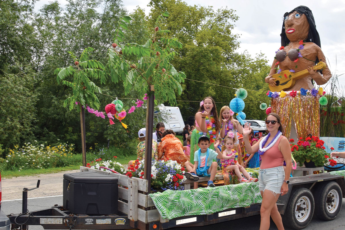 Unwind with Haweater yoga on the docks.The A division champions in the Haweater Slo-Pitch tournament are Runnin’ and Gunnin’.And they’re off! There were many participants in the Breakaway Sports and Cycle Haw 5K Run.C: THREE TIME’S A CHARM—The Lil Black Pearl, captained by the Tessiers, won their heat in the 8-11 division of the cardboard boat race handily. This beautiful creation also won the award for best decorated and took the Business Division under the Wired Up Electrical banner. Having competed, and lost, in the previous two Haweater Weekend boat races, the family buckled down and created the ultimate sailing vessel for 2024. This year marked the cardboard boat race’s 19th edition.His spidey senses were tingling! This little fan got up close and personal with Spider Man and Elsa at Expositor Square on Saturday.The Crash Sunday Band kept things lively at Soldier Park with their pop and rock classic hits.Gibson Gilchrist poses with his winning boat.These youngsters provided hydration and moral support for the Haw Run participants racing under a blazing hot sun.There were lots of elimination runs, with almost 50 registrants for the soapbox derby races. photos by Margery FrischThe Macaluso float combined Christmas and the Alo-Haw theme.Oaklynn and Dawsyn have their faces painted.Winners of the Huron Bass Derby Haw stop were Galen Trudeau and Santanna Eshkawkogan with their 27.30 lb haul.The Wilkin family Haweater parade float never disappoints.Youths from Batman’s Cottages and Campground had a float to recognize their fundraising efforts for a young girl dealing with serious health concerns.There was even rock climbing at Low Island!