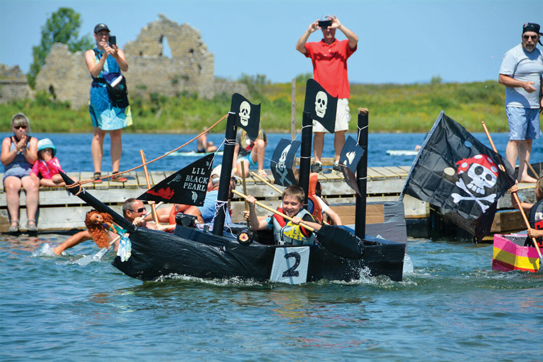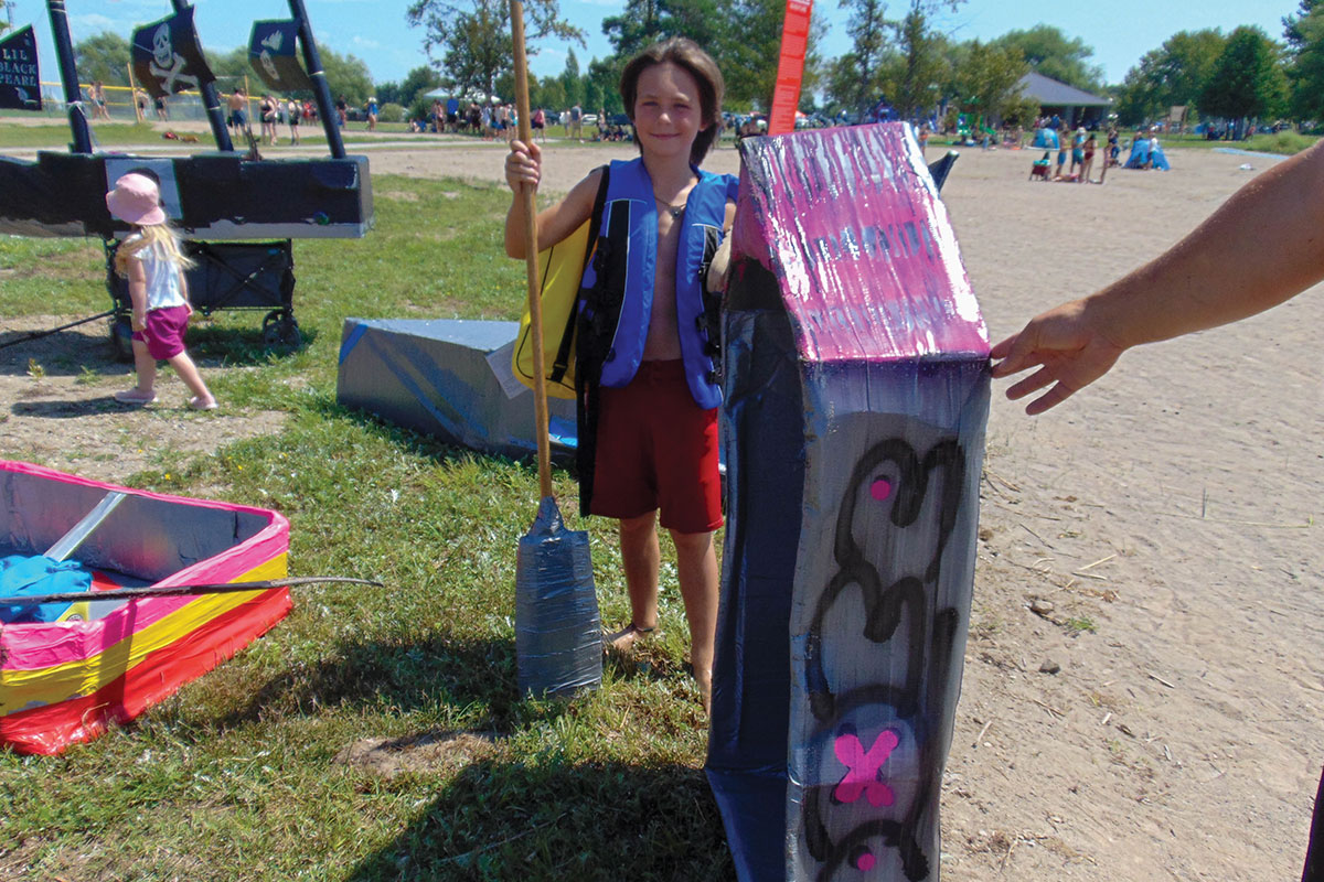 THREE TIME’S A CHARM—The Lil Black Pearl, captained by the Tessiers, won their heat in the 8-11 division of the cardboard boat race handily. This beautiful creation also won the award for best decorated and took the Business Division under the Wired Up Electrical banner. Having competed, and lost, in the previous two Haweater Weekend boat races, the family buckled down and created the ultimate sailing vessel for 2024. This year marked the cardboard boat race’s 19th edition.