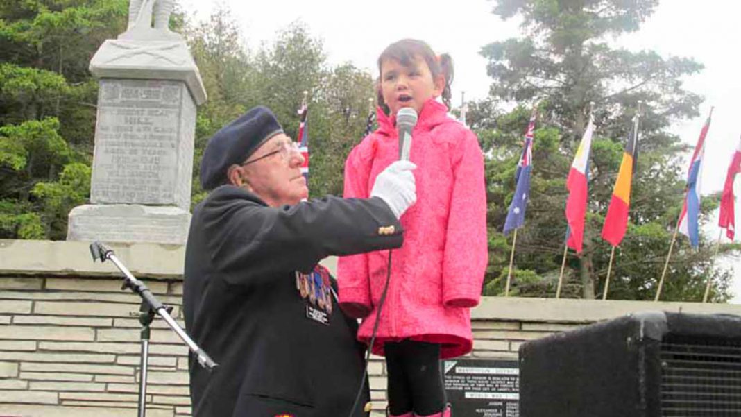 “I would like to introduce a young lady who will be singing O’Canada here today,” said Mr. Eaton, in introducing, “Sadie Hardy, who is four-years-old and is the granddaughter of Carrie Lewis, the former president of the Royal Canadian Legion Branch 514.”