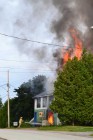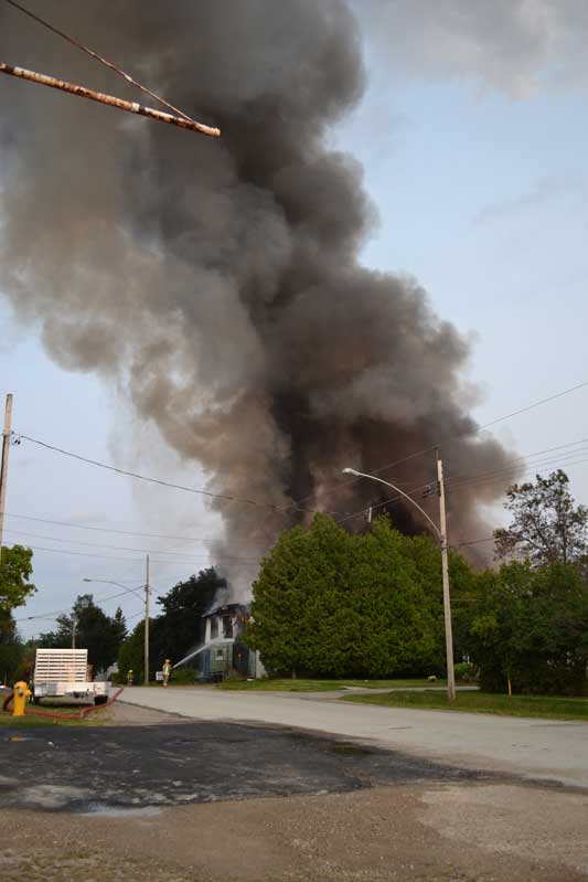 Unfortunately, the Manitoulin Island Training Centre, the former Church of Latter Day Saints to the left of the storage shed, has also caught fire.