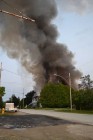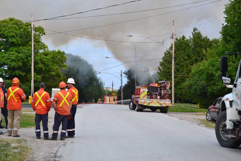 A number of explosions have resulted from the fire, sending a large fireball into the evening sky and causing debris to rain down on neighbouring streets. The hydro lines have also been destroyed, resulting in power outages in the community.