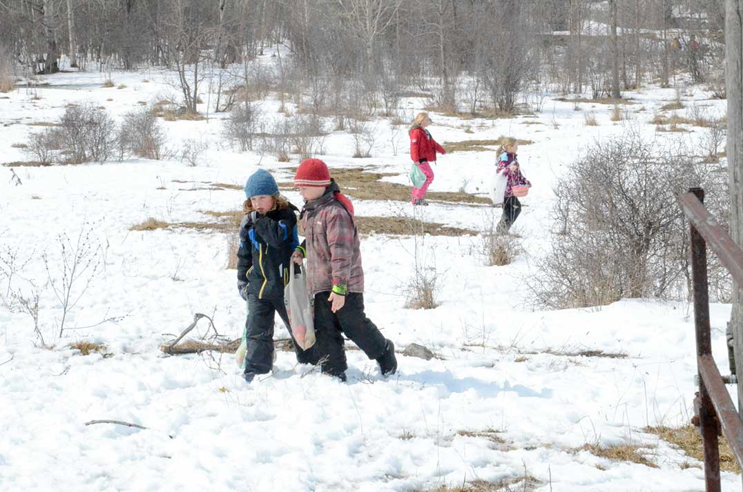 Volunteers in bright construction vests are stationed around the fields at the tapeline to ensure the children do not wander too far afield in their excitement. For the younger set, the candies and bright coloured plastic eggs are “hidden” on the lawn close to the house.
