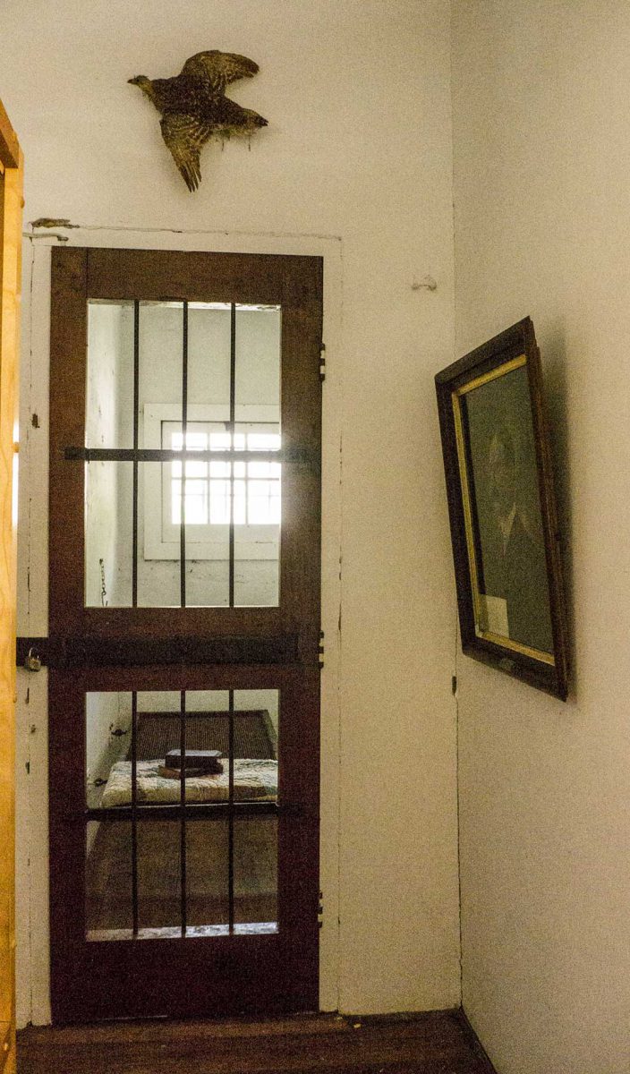 Step over the doorsill that separates the gallery from the home and jail to be transported into Gore Bay and environs of the late 1800s. In the warren of original rooms, upstairs and down, little dioramas are created, each a surprise to come upon. A child’s bedroom resonates with the care of the painstaking hand work in the lace bed cover and embroidered nursery rhymes. In the jail, one cell is exactly as it was then, cot overlooked by barred window; other cells are arranged as curio cabinets of fascinating relics of bygone days: clothing, dolls, wash bowls and jugs ordered from the Eaton’s catalogue.