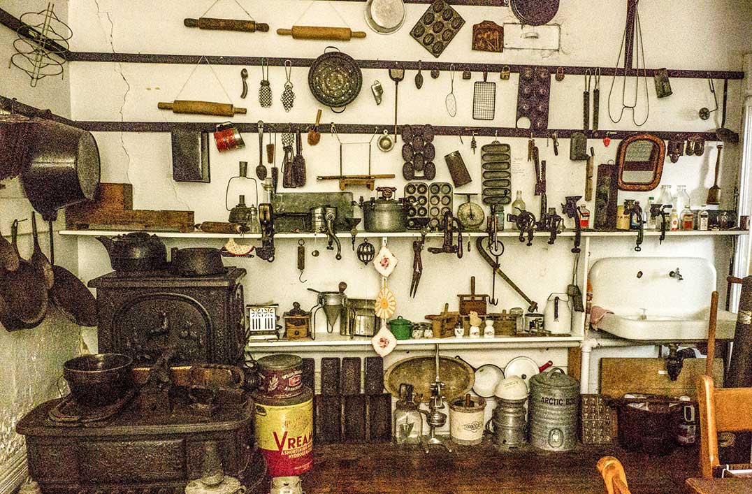 The former home of the jailer and his family, and the ‘lockup’ part of the house—four tiny jail cells with a high barred window, narrow barred cell door and barely enough room for a cot—were separated by a thick wood door. Nowadays, this part of the museum, home and jail, accommodates early settler artifacts, furniture, lace bedspreads and table runners, dolls, toys, dresses, hats and kitchen implements in its perfectly preserved, original rooms; a noteworthy collection honours the career of local photographer Joseph Wismer with exquisite prints made from his glass negatives taken between 1900 and 1930. The prisoners’ wood refectory table, off-limits to photographs, is a moving memorial to the men who carved their names on its surface.