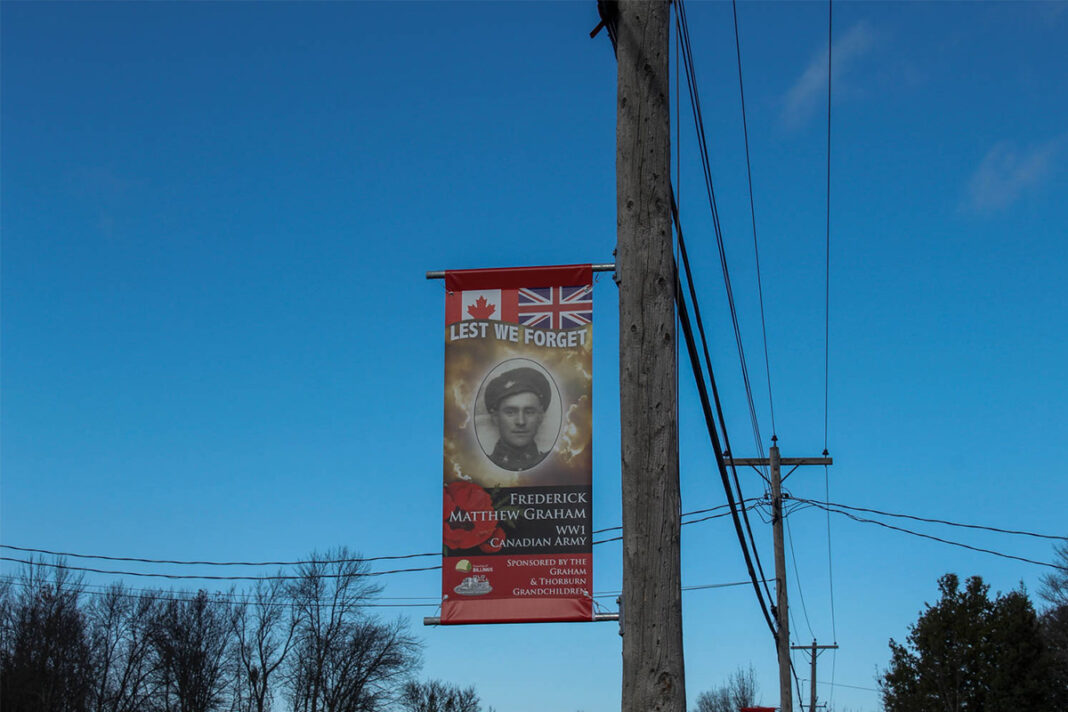 The veteran’s banners will remain in place until after Remembrance Day. Once the banners come down, the brackets will stay up for use by other community organizations.