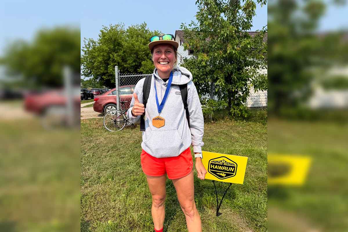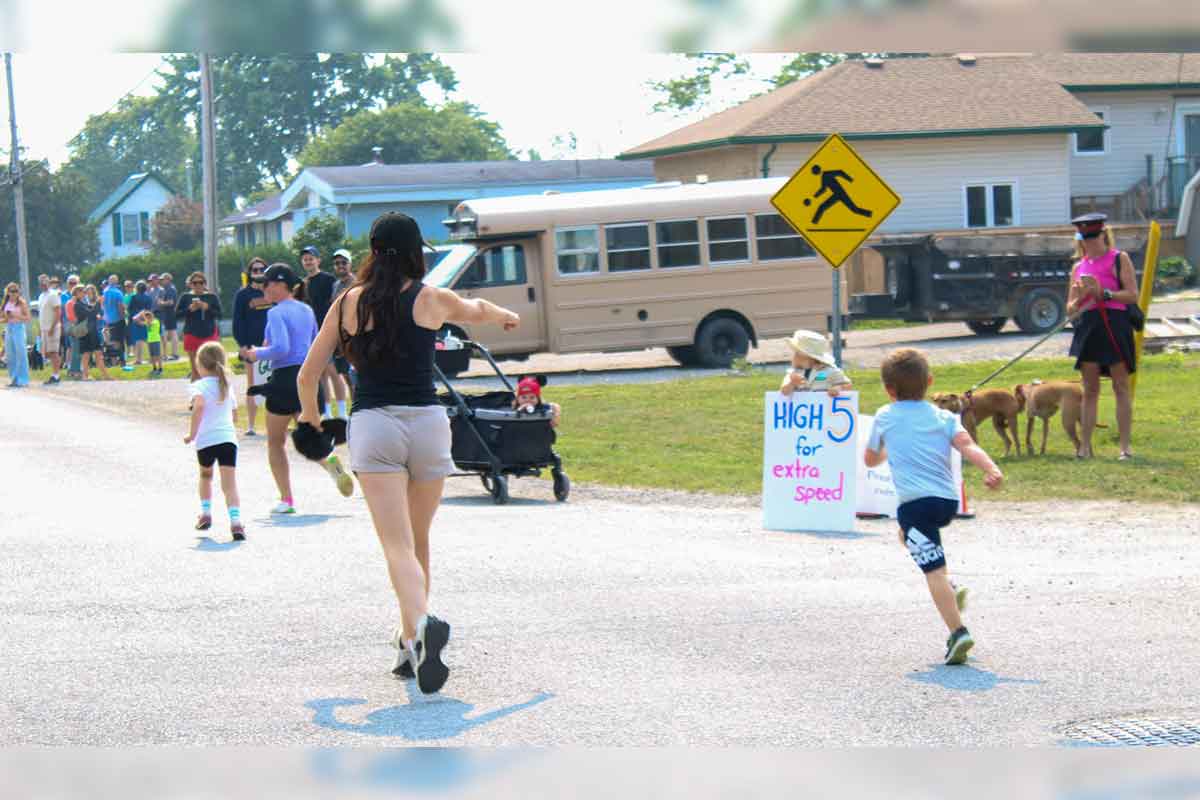 First place under-16 10K race winner was Sean Zembal.Shannon Miller won first place in the female 10K race.A tiny sign bearing supporter offers words of encouragement for the runners.Lots of the runners were out in full Haw-loween costume for the event, providing lots of colour.First place Masters Male was won by Rodney Garratt.5K female first place winner was Allana Macaluso.Third place winners in the 5K race were Oliver Hall and Nathan Quackenbush.