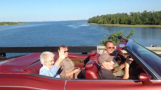 On land, the Rainbow Country Cruisers car club paraded across the bridge, led by Andy Watson, the first person to drive a commercial truck across the swing bridge when the bridge was first opened to traffic in 1944. Following a cruise through the community, the cavalcade of classic and vintage automobiles, including a camo-clad 1945 military truck, lined up along the eastern edge of Water Street for the edification of autophiles and casual onlookers alike.