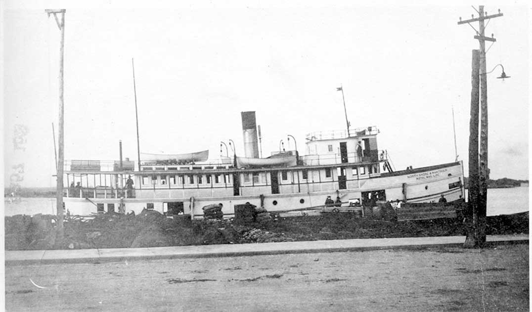 The Bon Ami was originally built in Wisconsin in 1902 as the ‘Mariposa,’ a tugboat, according to the writings of Bill Sims, the son of Thomas C. Sims. Thomas, along with his brother Charles L.D. Sims, co-owned the 118-foot Bon Ami from 1909 to 1921. Renamed the Bon Ami, she was converted to a passenger steamer at Soo, Michigan in 1909 at a cost of $18,000 and was then put into service bringing mail, livestock, supplies and even automobiles to Manitoulin and North Shore ports. Built from seven-inch-thick blue oak, the Bon Ami was a formidable ship for its size; so strong that she was often used to break up ice in the waters of the North Channel in early spring.