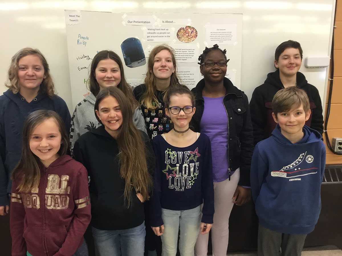Their submission stated, “people already use anaerobic digesters to collect the methane and get rid of compostable waste, without causing methane in dumps. Heated sidewalks have also been built. Methane gas has also been used to power buildings, but never to heat up sidewalks. Sidewalks have also been cleared by snow machines, shoveling and even pouring buckets of hot water, but these processes can take extreme periods of time. So, we put our ideas together and that’s how we made our innovation project. Our project is special because no one has combined using methane gas as a heat source to clear sidewalks.”