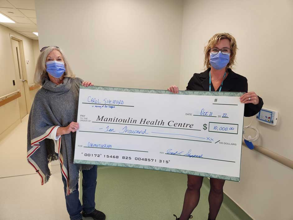 “I have lived my entire life on Manitoulin Island and feel very blessed to have the opportunity to travel. When thinking about my winter plans, I determined it was more important that I look closer to home financially,” Ms. Sheppard said. “The renovation and expansion of the Mindemoya emergency department, particularly with the chemotherapy unit, is so important to our community. I have chosen to take my winter vacation fund and donate it to the chemotherapy unit in Mindemoya. I know Ron would have wanted to see those monies stay here on Manitoulin as well. As a family, we have spent time within the walls of the Manitoulin Health Centre (MHC).”