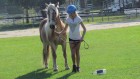 The fair would not be complete without animals and Mr. Killens remarked that he had talked to people who rode the horses they were entering to the fairgrounds and that one gentleman, Cliff Tann, remembers driving oxen to the event. There were no oxen this year, but there were lots of dogs as well as two sheep, a horse, cats, chickens and a rooster with Ben Dewar of Providence Bay showing his two hens, Rennie and Breanna. Mindemoya veterinarian Doctor Mary Yett Rachel was on hand to judge the cats and the fowl and Rachel Sheppard and her dog Lily and Sydney Hallett with her West Highland white terrier Betty explained some of the rules for the dog show. “Your dog has to do tricks, the most tricks for the judges. To see how well behaved they are,” Rachel explained, “and there are different categories like classy groomed, short hair, long hair and small dog.” Kathy Grant was once again on hand to judge the dogs while Kyla Jansen from Honora Bay Riding Stable put Morgan Wall-Varey and her horse through their paces.