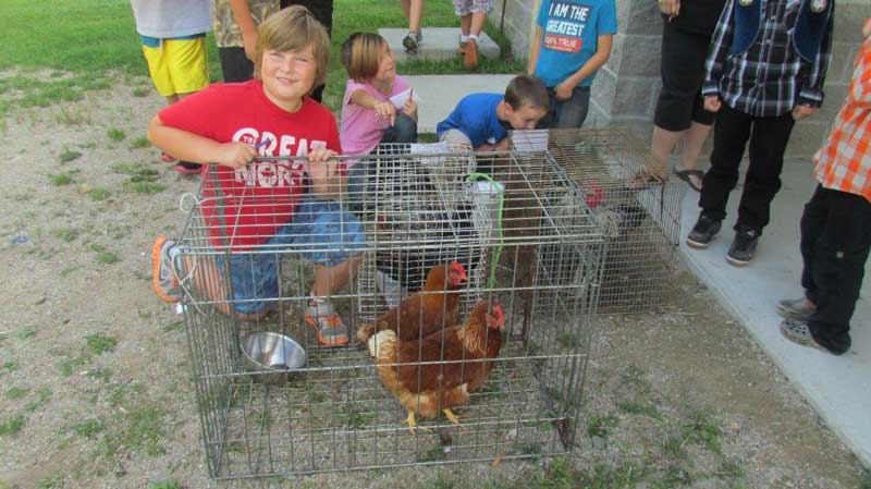 The CMPS Fall Fair always includes a parade with Community Services Officer Al Boyd leading the way with the student council members close behind on a decorated float supplied by Sharon and Lyle Dewar and towed by Elwin Shaw with his truck. All the students and teachers participate in the parade along with Perry Keller in the township’s fire truck to add to the festivities. The exhibit of all the animals entered in the fair then takes place along with the judging. The students then return to CMPS, as always, to a delicious Fall Feast thanks to their teachers and parents.