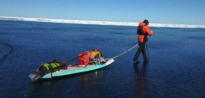 Scott Parent along with his partner Zane Davies made the first-ever ice crossing of Gerogian Bay on foot and by paddleboard this winter.
