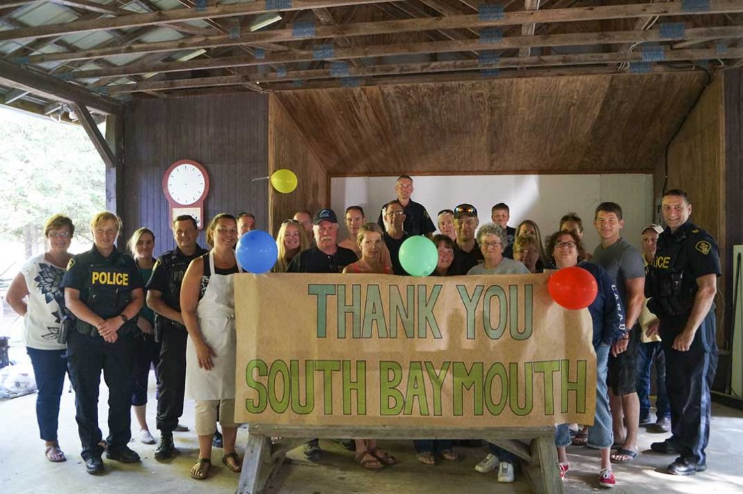 SOUTH BAYMOUTH – On Wednesday, July 3, a cool day greeted over 40 community members and responders during a community barbecue hosted by the Ontario Provincial Police (OPP) in John Budd Park, South Baymouth. The afternoon was organized to give special thanks to residents of South Baymouth for their efforts in supporting first responders and volunteers during the successful search for Shirley-Ann Robbie.