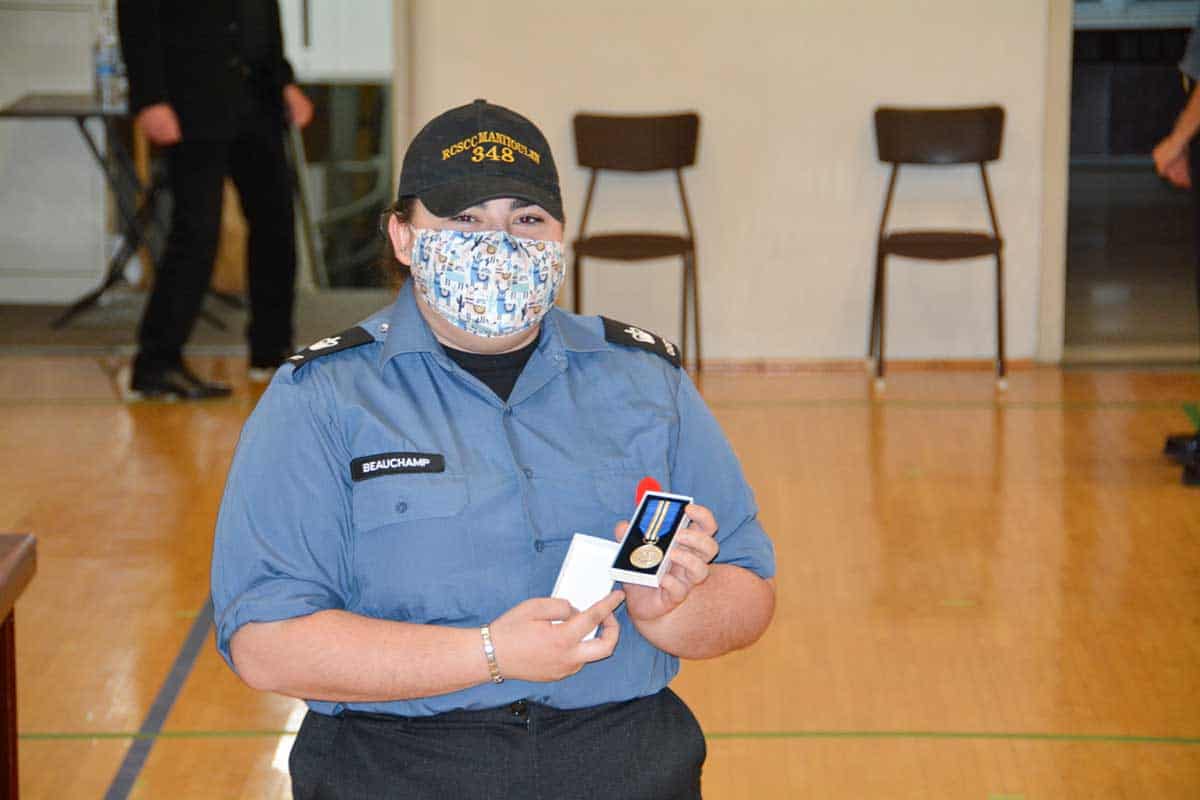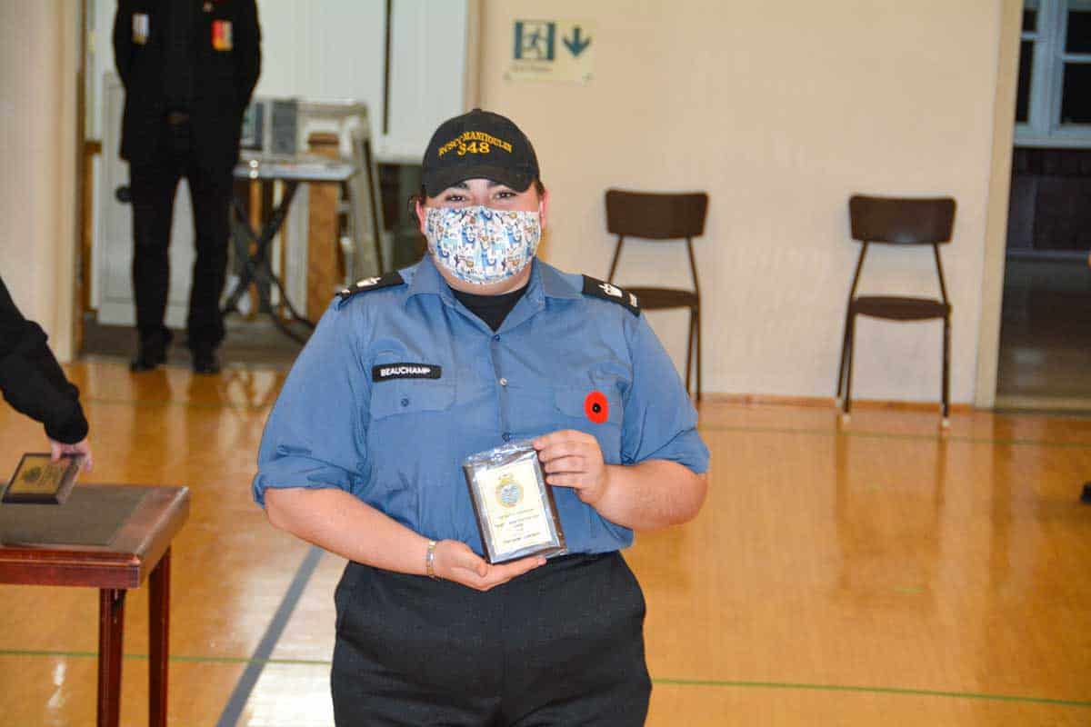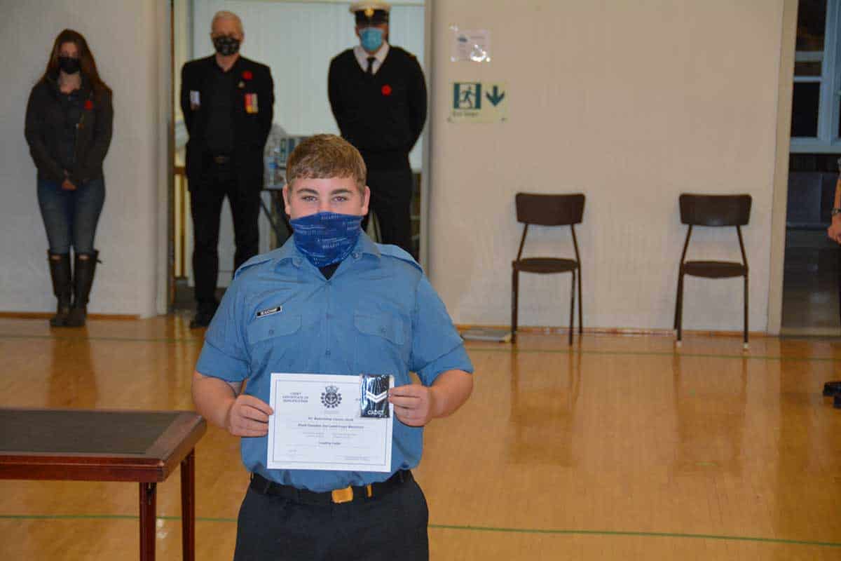 Next it was on to the moment everyone was waiting for: the awards. CO Boucher explained that awards were typically given out during the annual review, held each year in June. This year the review was cancelled for obvious reasons and the cadets had been waiting anxiously for five months to hear the news.