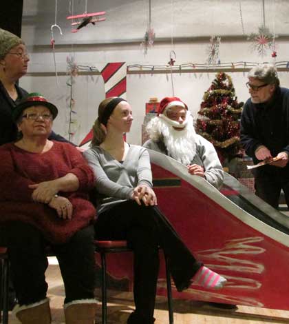 Newcomer Lori Evans is the sleigh saleslady Lou Flapdoodle, trying to sell a new top-of-the line sleigh to Santa Claus and we laugh at her over-the-top sales pitch. Kayla Greenman plays Kit Bishop, an adolescent who learns a great deal about herself and Christmas. An actress from Toronto, Kay Valentine, plays Bozidar, Santa’s helper who is not entirely fluent in the English language. Her garbled speech will have you in stitches.